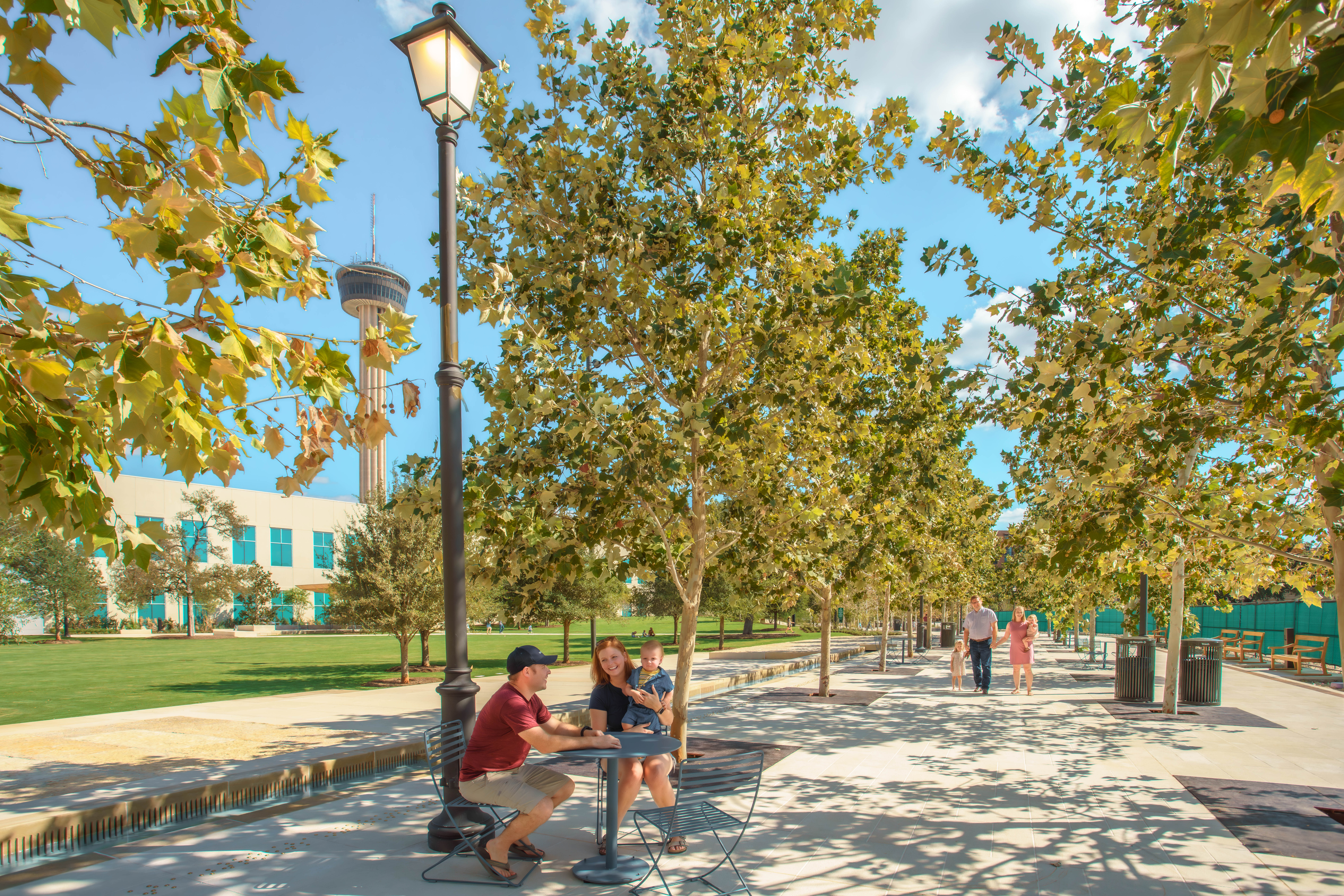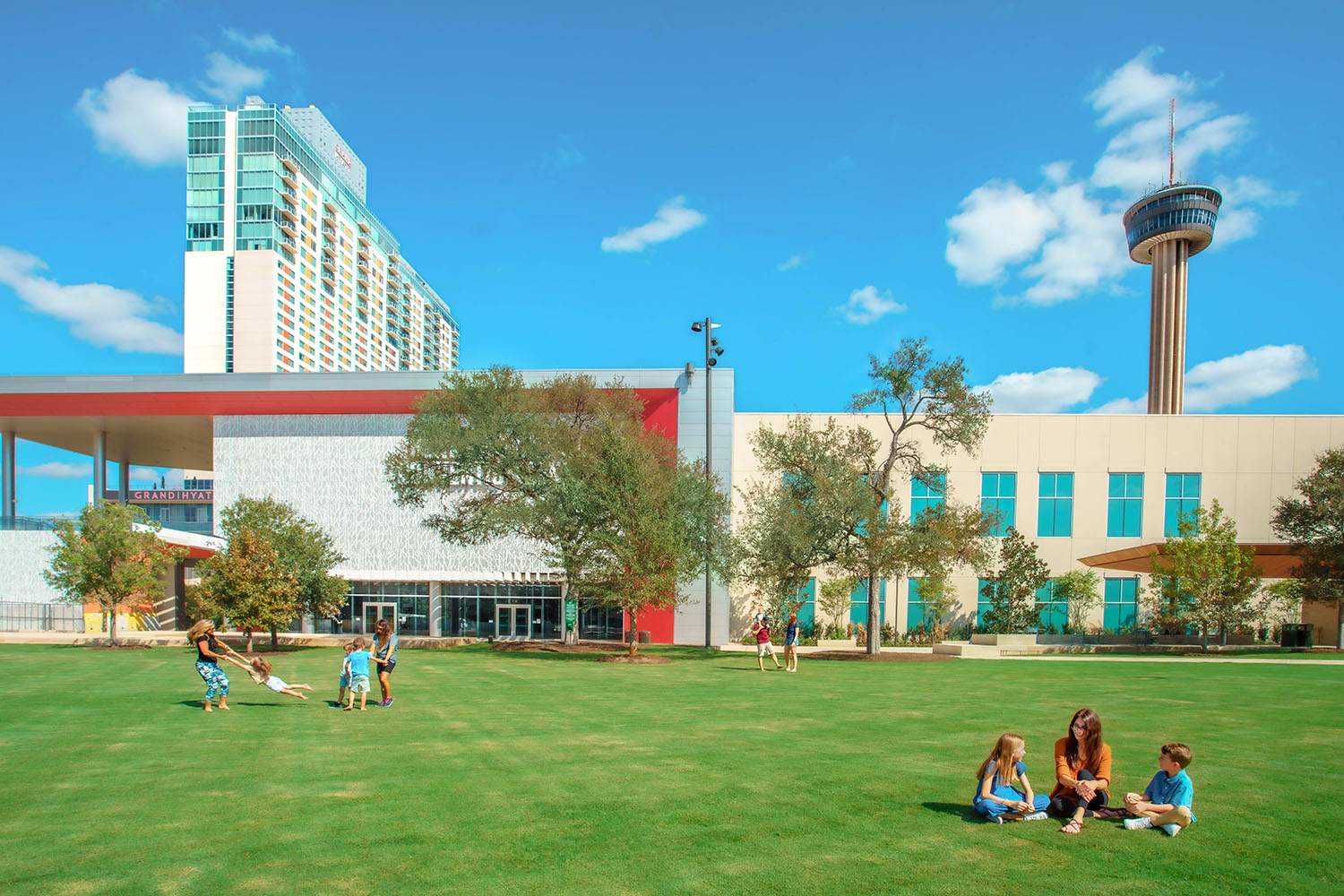 Civic Park is a nine-acre public park in San Antonio’s downtown core managed by Hemisfair Park Area Redevelopment Corporation (HPARC). Located within the former 1968 World's Fairgrounds, the park is adjacent to the River Walk and several vibrant and growing neighborhoods. Civic Park is the second of three public parks in the Hemisfair redevelopment and will be a world-class outdoor gathering place. Civic Park Phase 1 will include construction of the Shallows and Promenade water features, the Great Lawn, restroom building, sprawling natural stone blocks and pavers and new utilities, including free public WiFi.