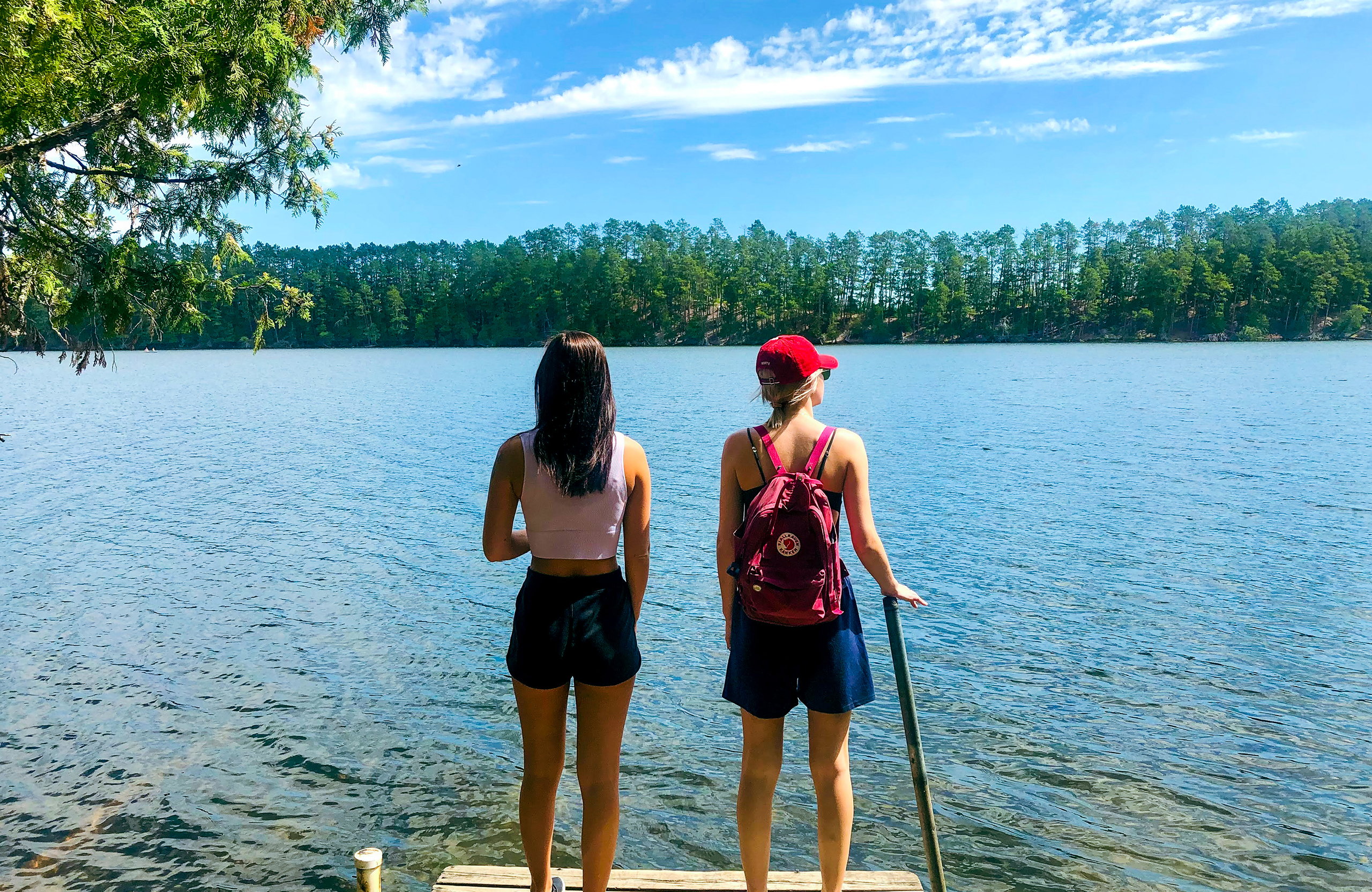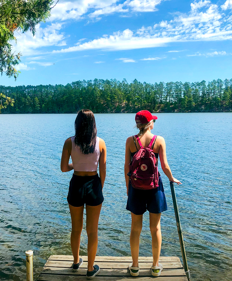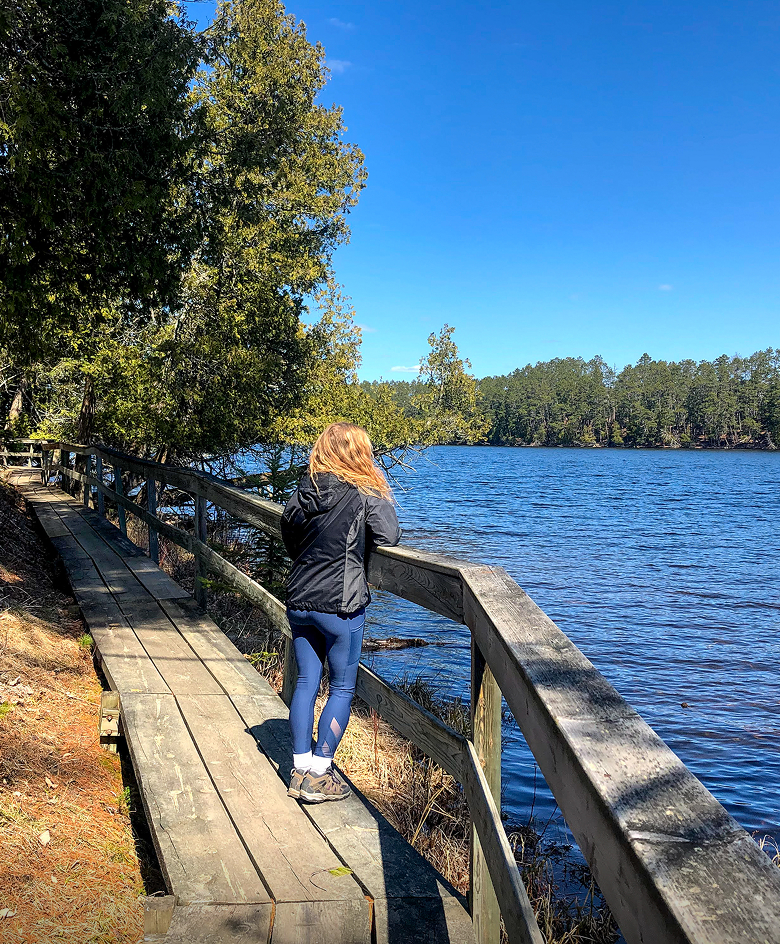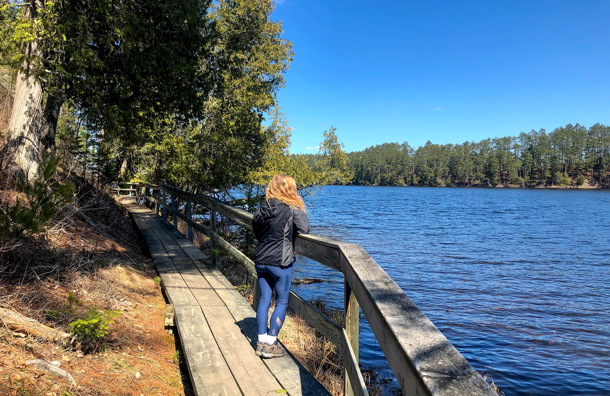 The park’s two-mile out-and-back Chase Point Trail wanders among old-growth trees for stunning views of the lakes.