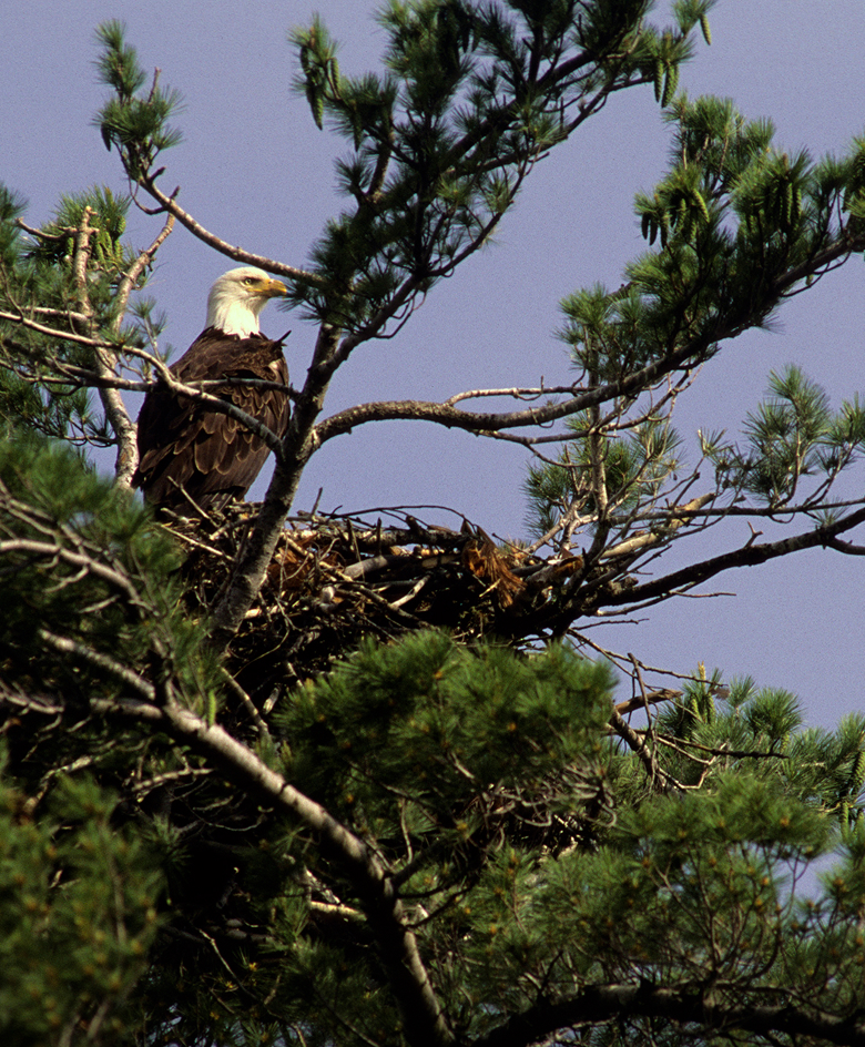 Look for bald eagles flying overhead, and keep an eye out for ospreys and hard-to-find spruce grouse on a walk along the water.