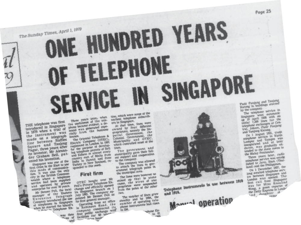 In 1879, Singapore conducted its first telephone trial using a telegraph line between Raffles Square and Tanjong Pagar, just three years after Alexander Graham Bell patented the invention.