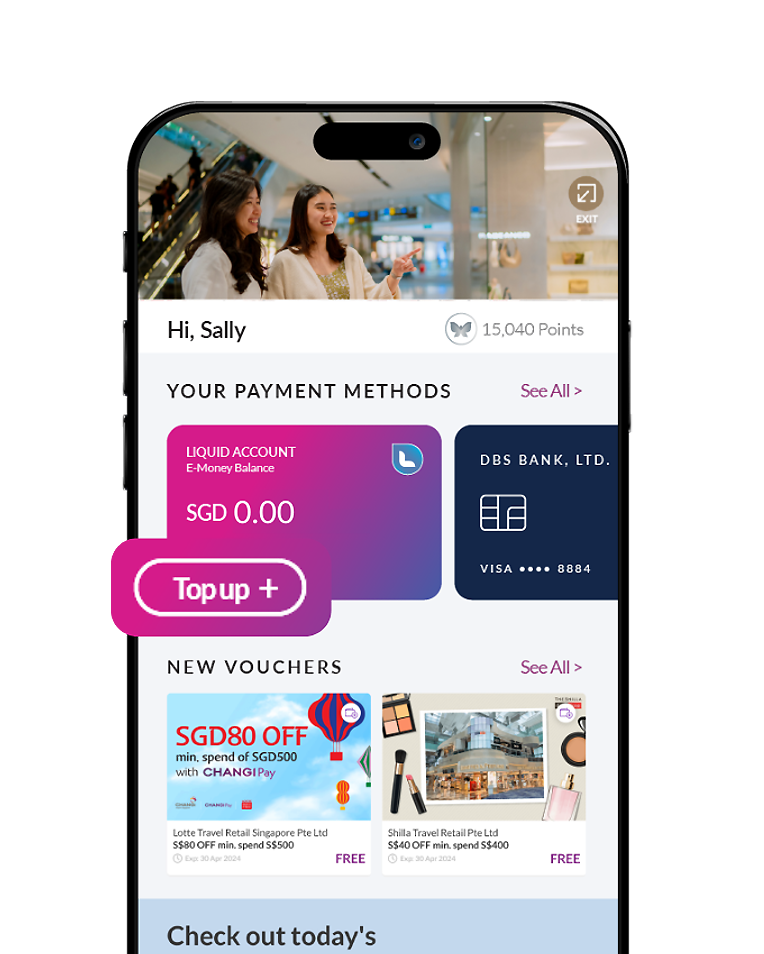 使用促销代码“CPAY5MY” 为Liquid Account充值S$50 可获得S$5电子礼券* 优惠至9月29日截止** 查看如何储值及使用