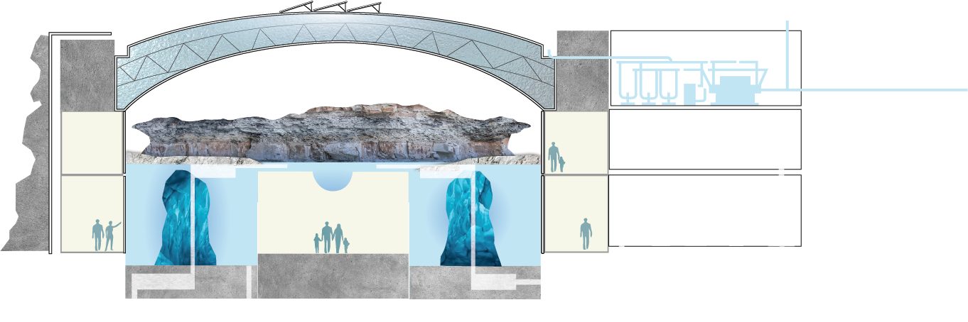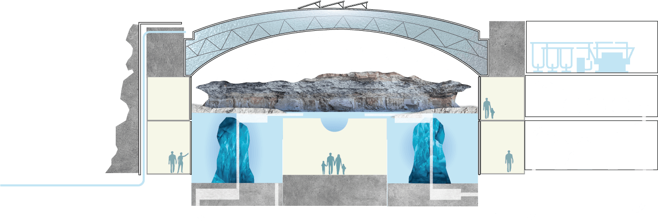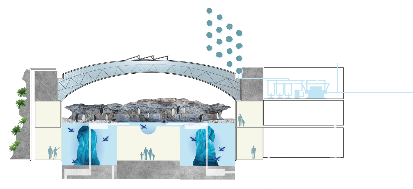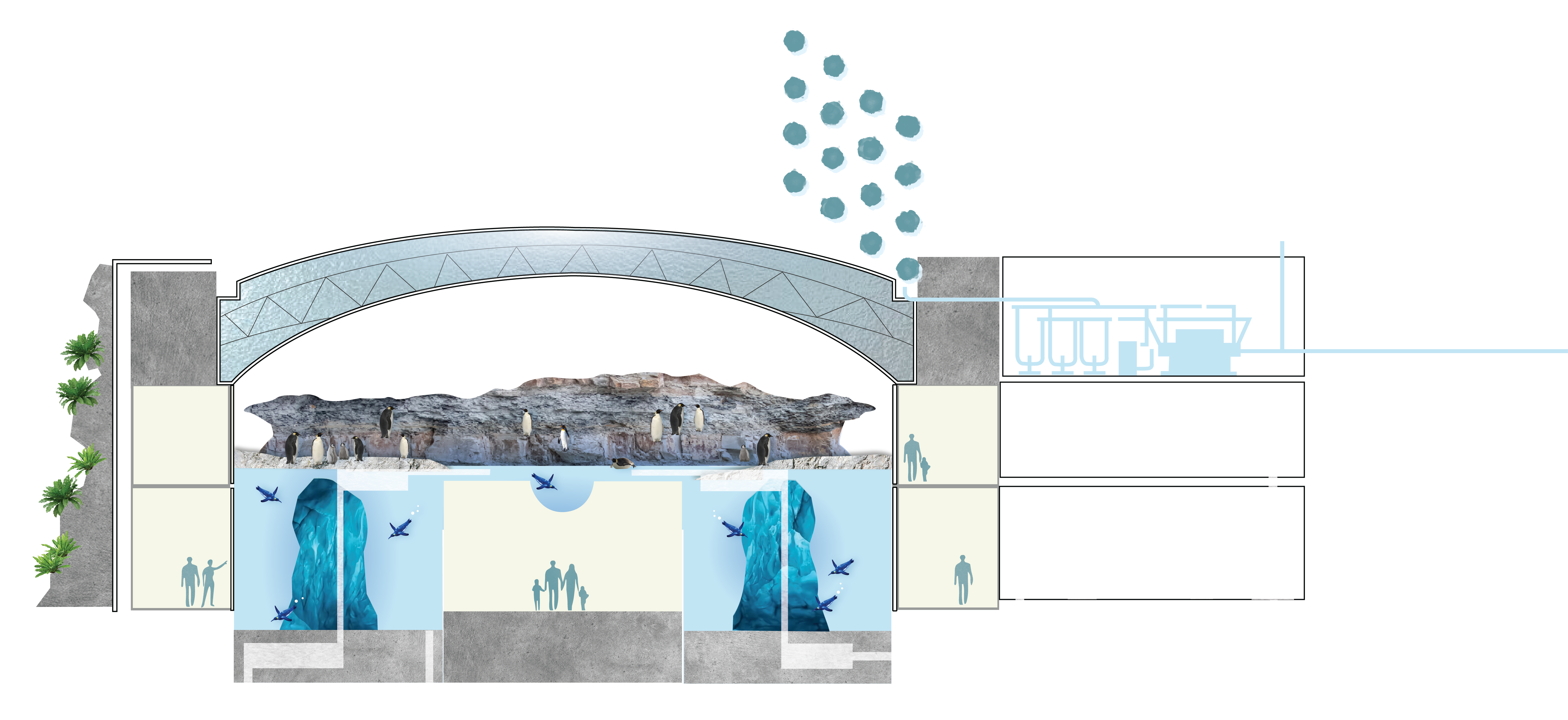 企鹅展区的水经过生命支持系统中的制冷机以及空气和水过滤器处理后,再循环使用,确保水资源的浪费降至最低。
