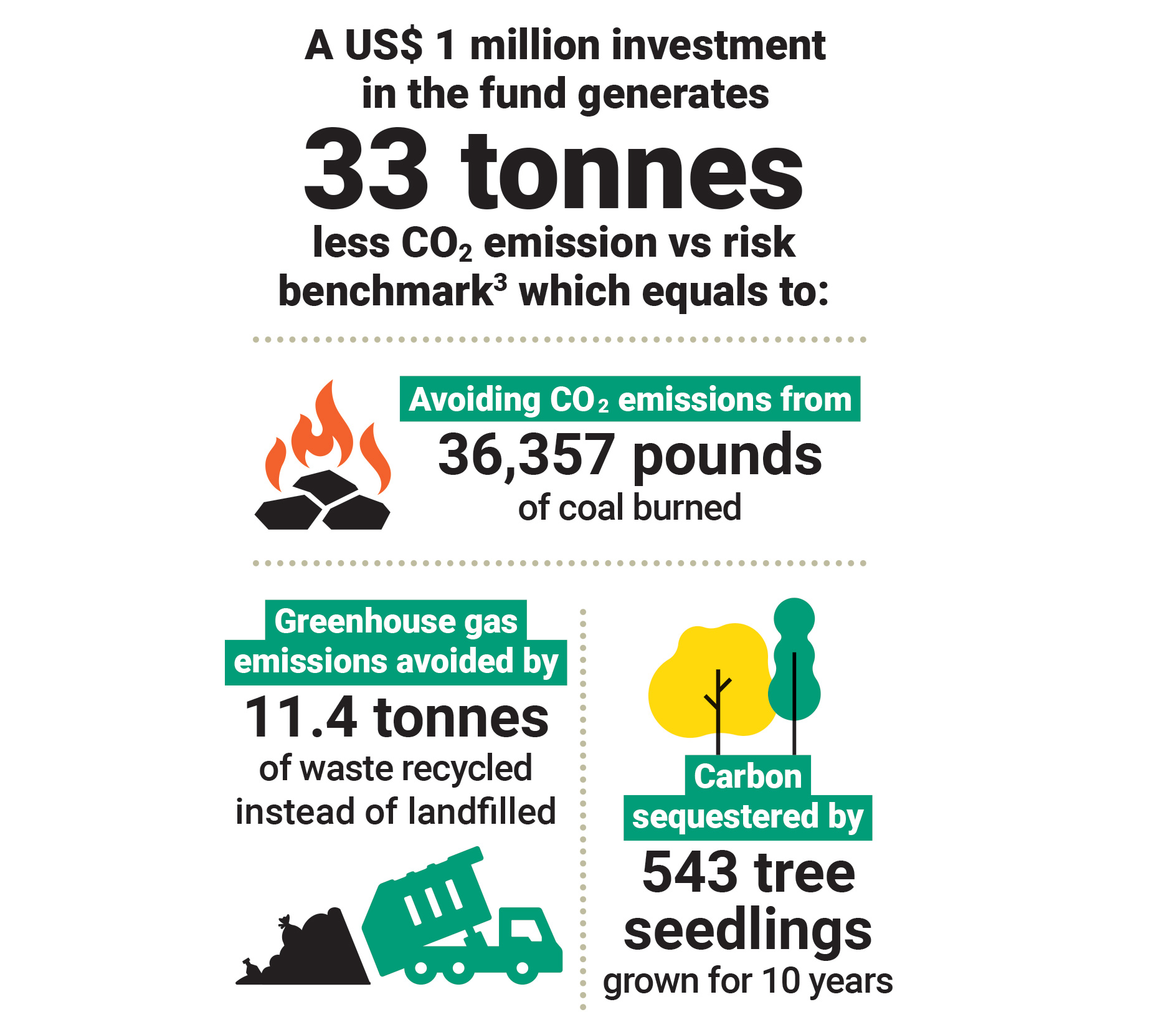 The team reports on key ESG metrics every month, including the ESG score of the Fund relative to its risk benchmark .