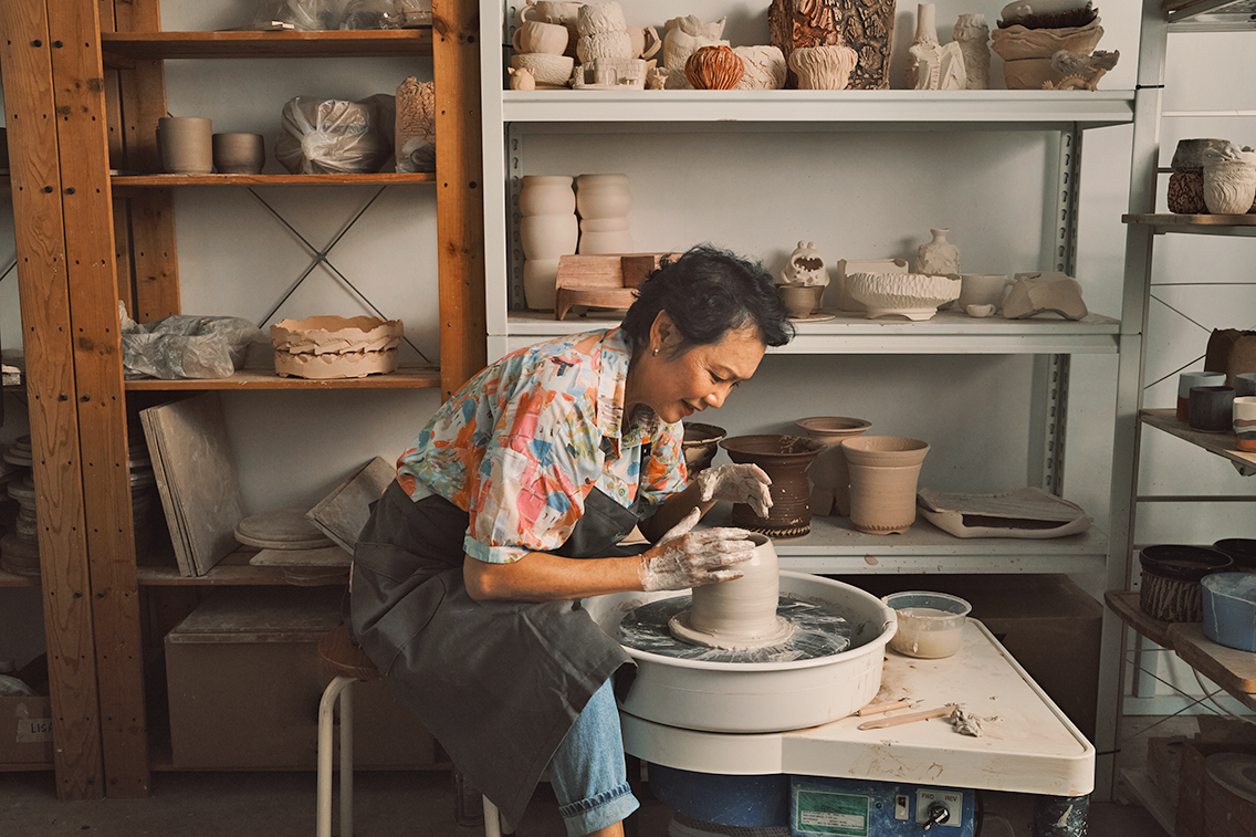 从事陶瓷工作已20多年的李秀莹(66岁),仍继续享受着这一爱好带来的创作乐趣。她创作的作品既实用又有欣赏价值,比如用来储存茶叶的罐子。