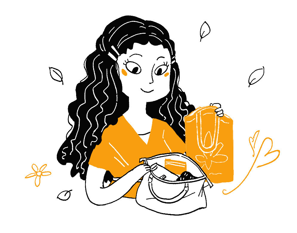小贴士:把可重复使用的购物袋放在家门口附近,或者随身携带几个,总有派上用场的时候!