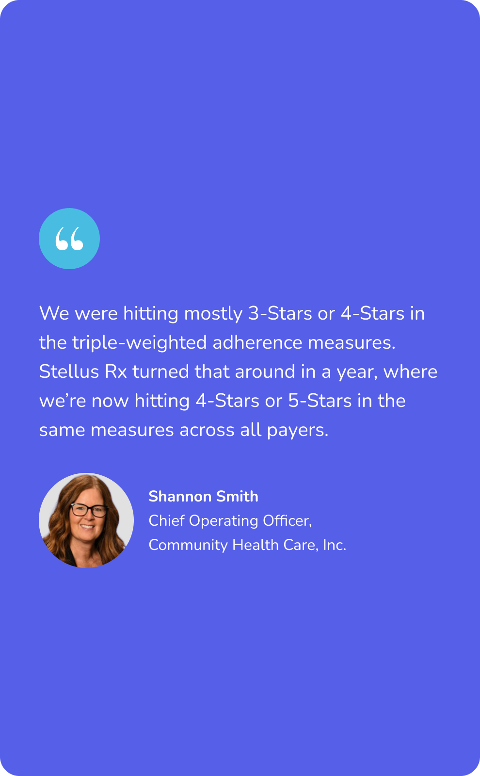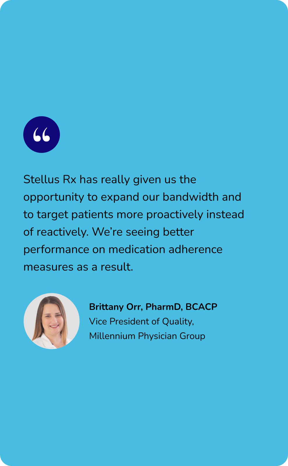 Stellus Rx has really given us the opportunity to expand our bandwidth and to target patients more proactively instead of reactively. We’re seeing better performance on medication adherence measures as a result.