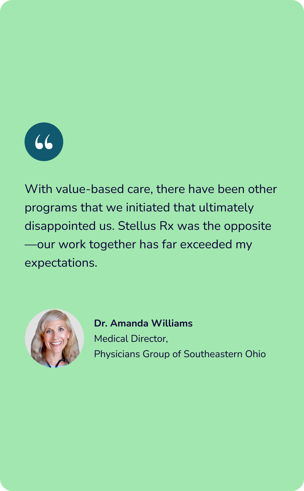 With value-based care, there have been other programs that we initiated that ultimately disappointed us. Stellus Rx was the opposite—our work together has far exceeded my expectations.
