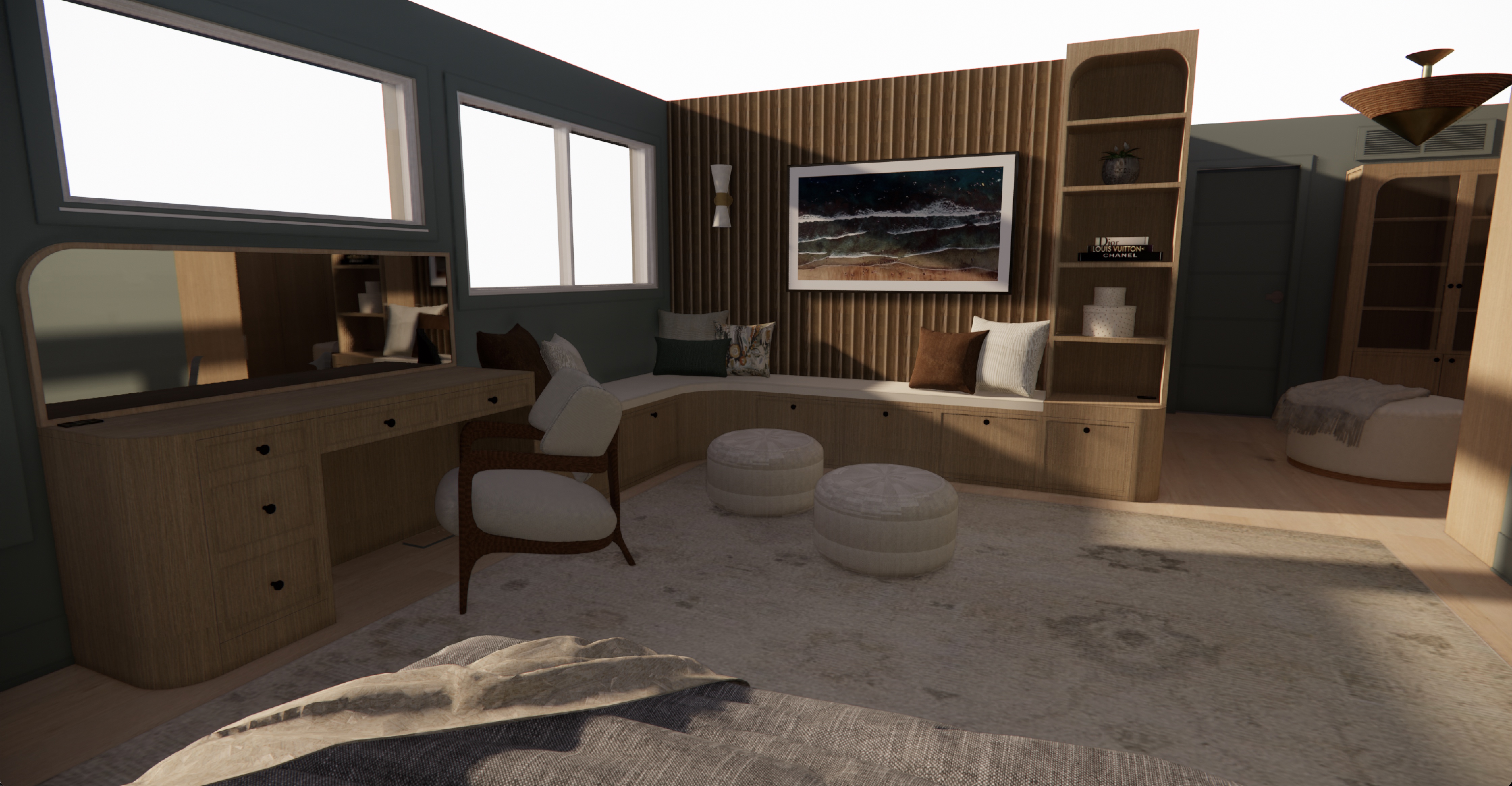 Jacquie Newberry a commencé à utiliser un module d’extension fondé sur l’IA convertissant ses esquisses d’aménagement en des images photoréalistes à montrer à ses clients.
