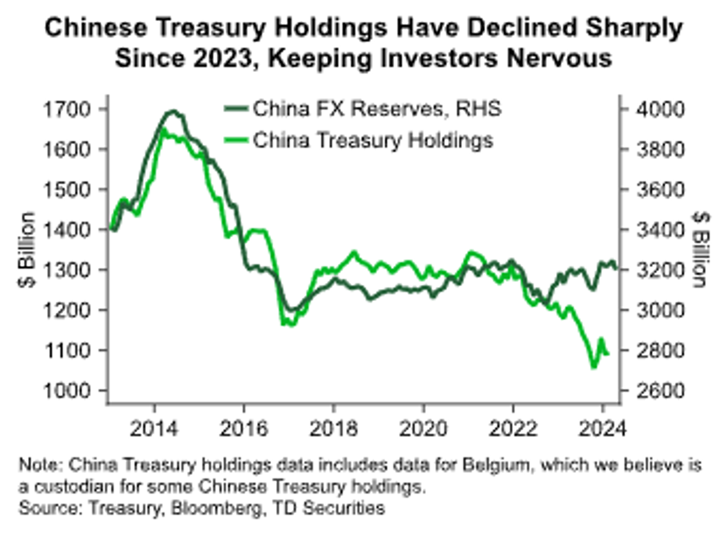 Note: China Treasury holdings data includes data for Belgium, which we believe is a custodian for some Chinese Treasury holdings.