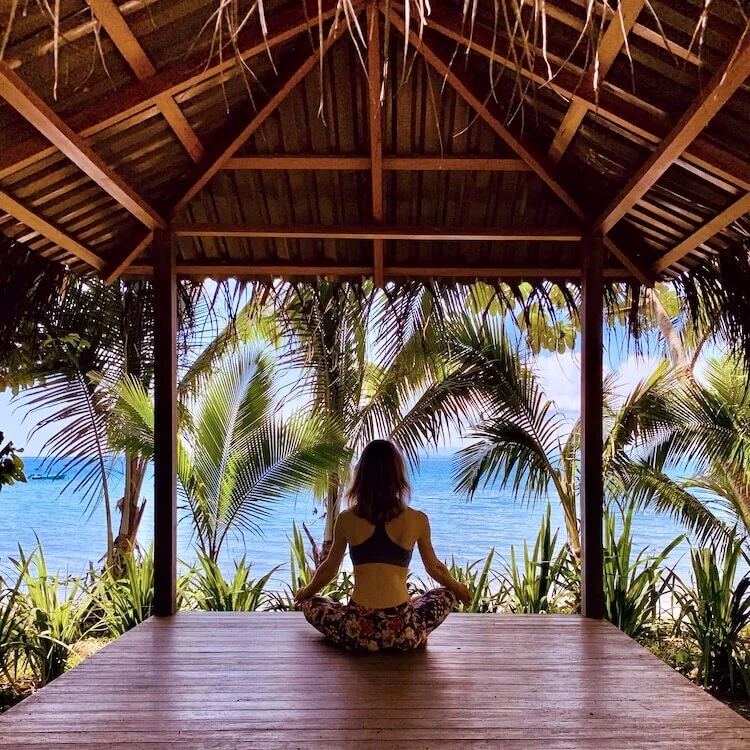 Doing an al fresco yoga class by a waterfall, hearing the sound of the water throughout the practice
