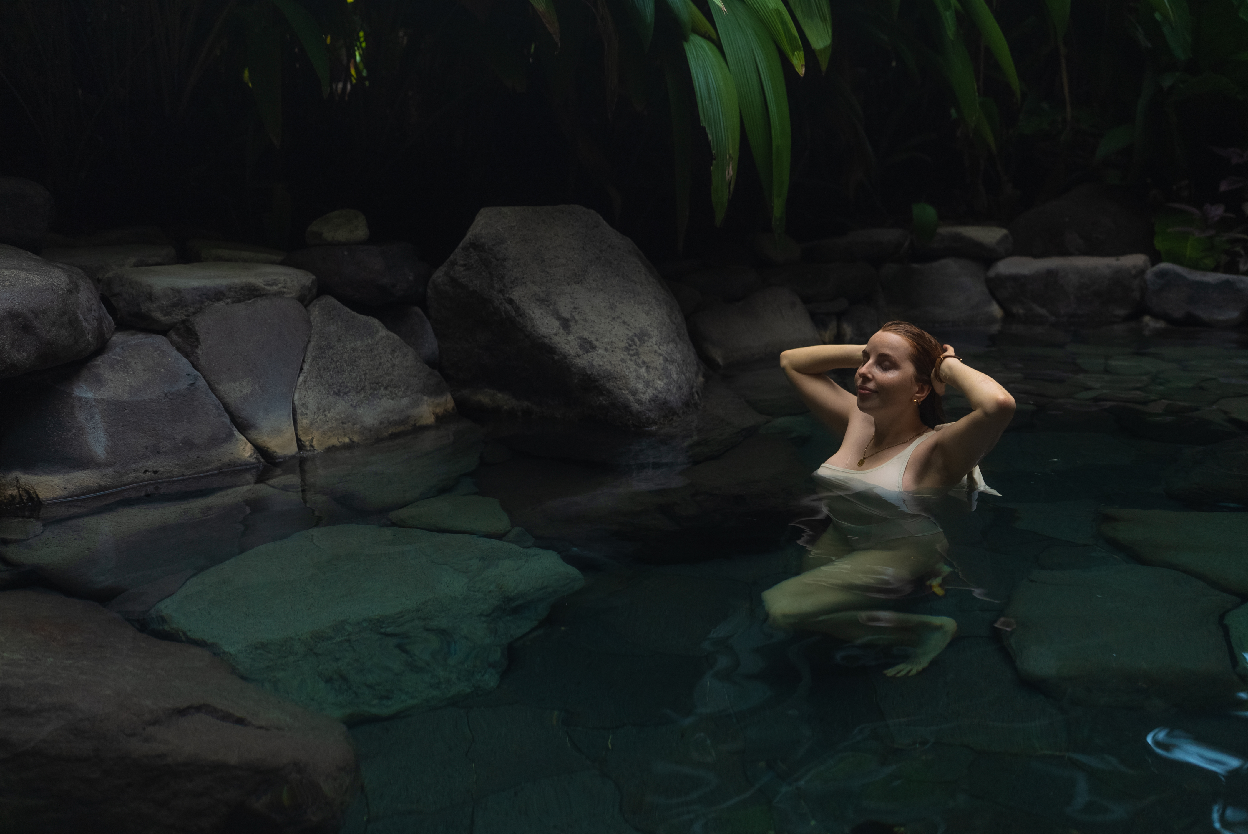 Bathing in hot springs and enjoying warm volcanic water at one of the resorts close to Arenal volcano