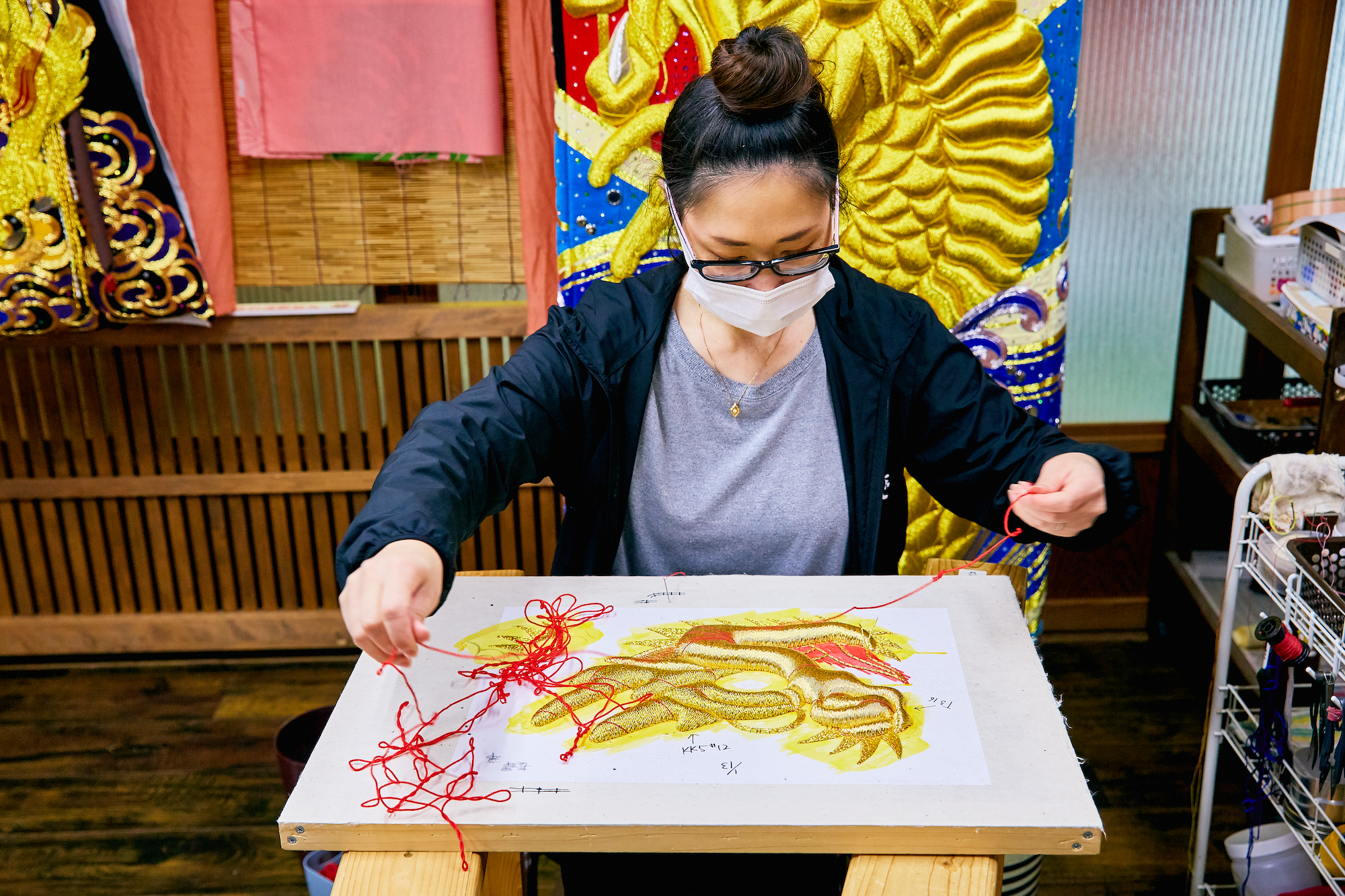 糸の重ね方など細かい作業も多い。皆、挑戦と失敗を繰り返しながら感覚でつかんでいく