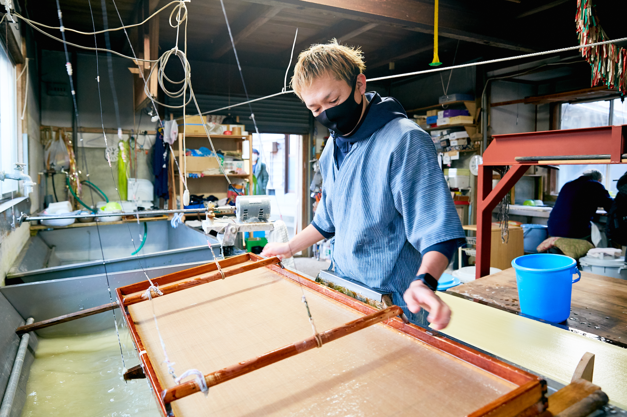 前後左右に動かすが、石州和紙の場合は前後にしか