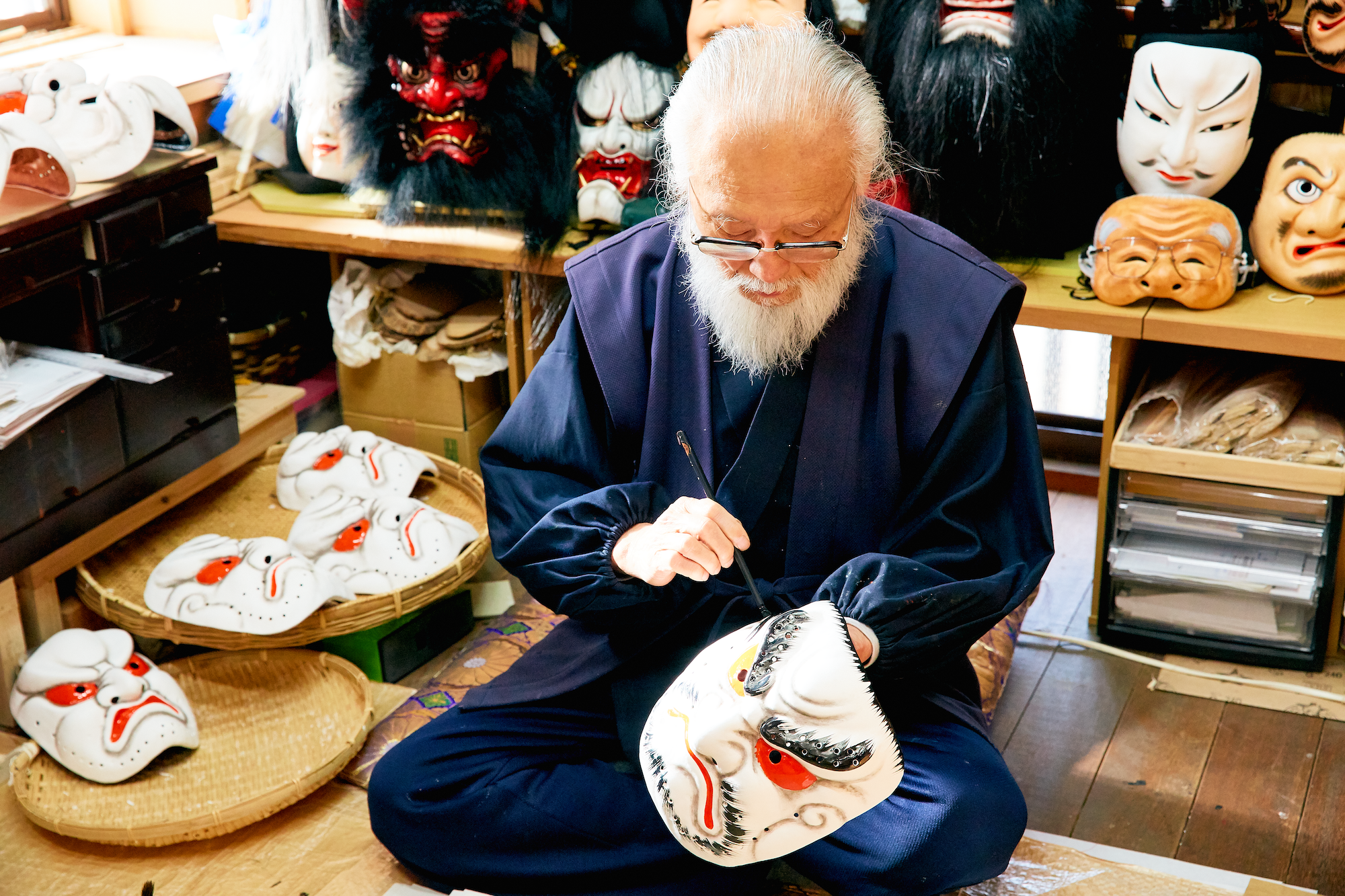 「コレクションはこれで最後」と50年目の節目に柿田勝郎面工房に別注した神楽面