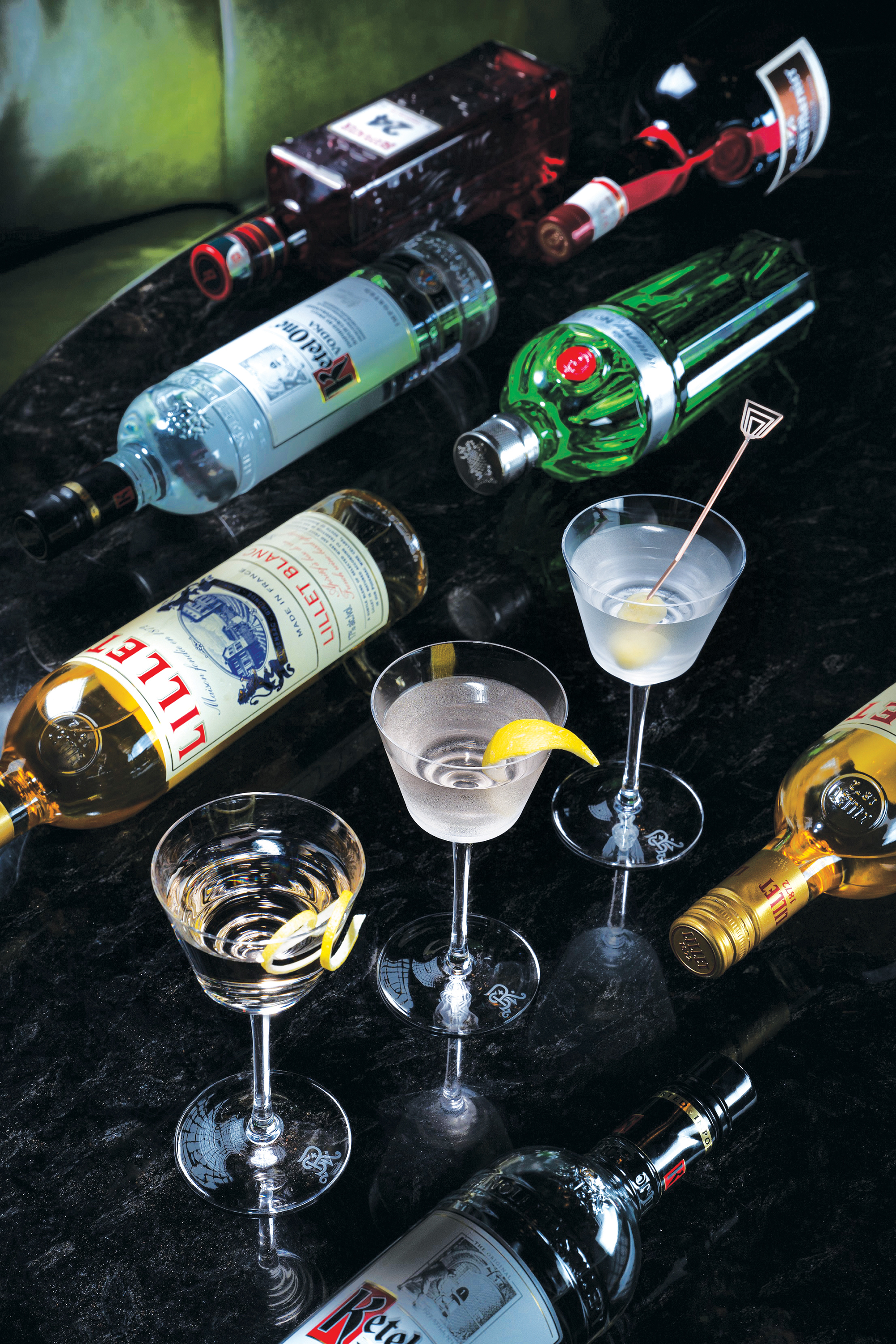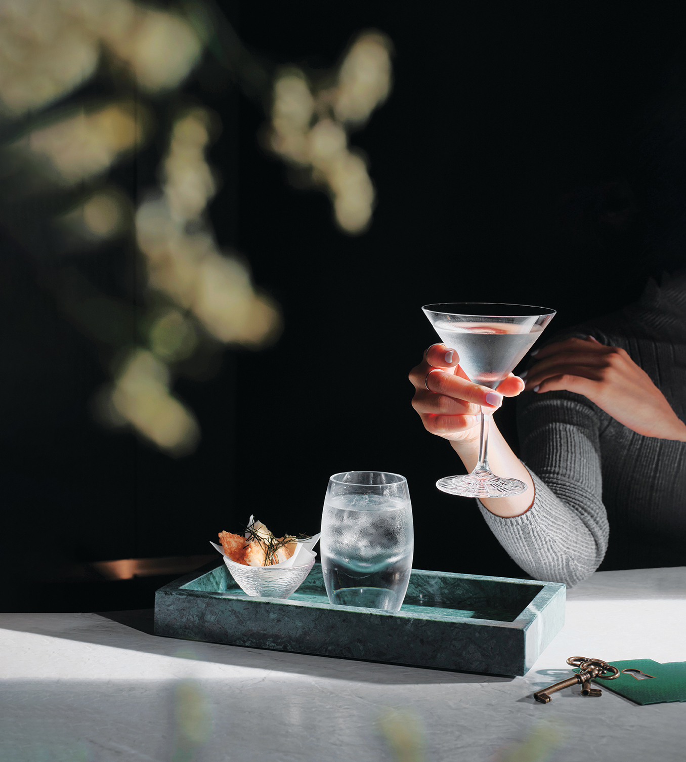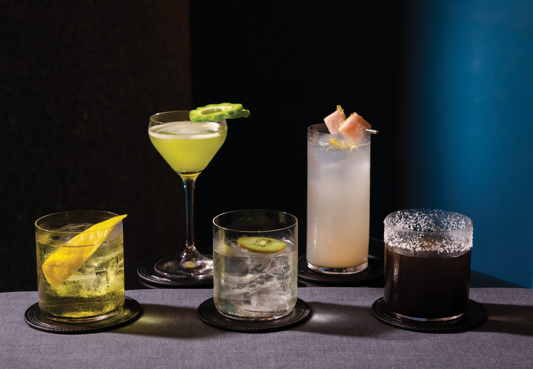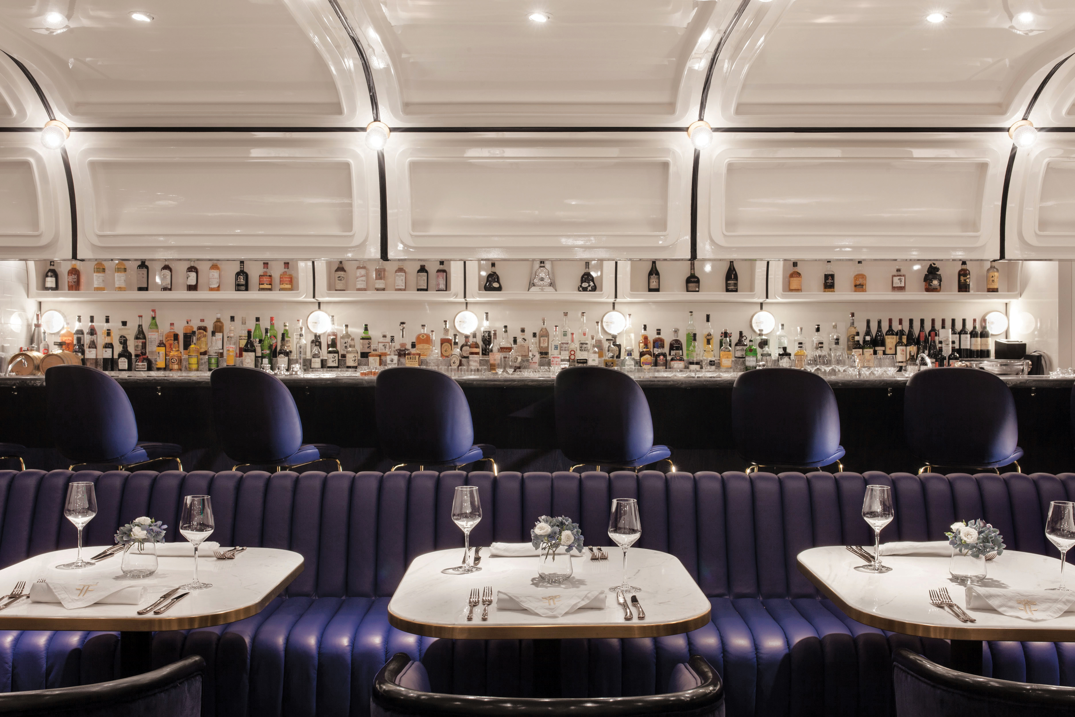 A contemporary Art Deco-inspired bar with elegant G&Ts