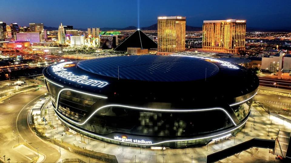 Located in Paradise, Nevada, Allegiant Stadium is a modern marvel known for its sleek design and retractable field, serving as the home stadium for the NFL's Las Vegas Raiders and UNLV collegiate games.