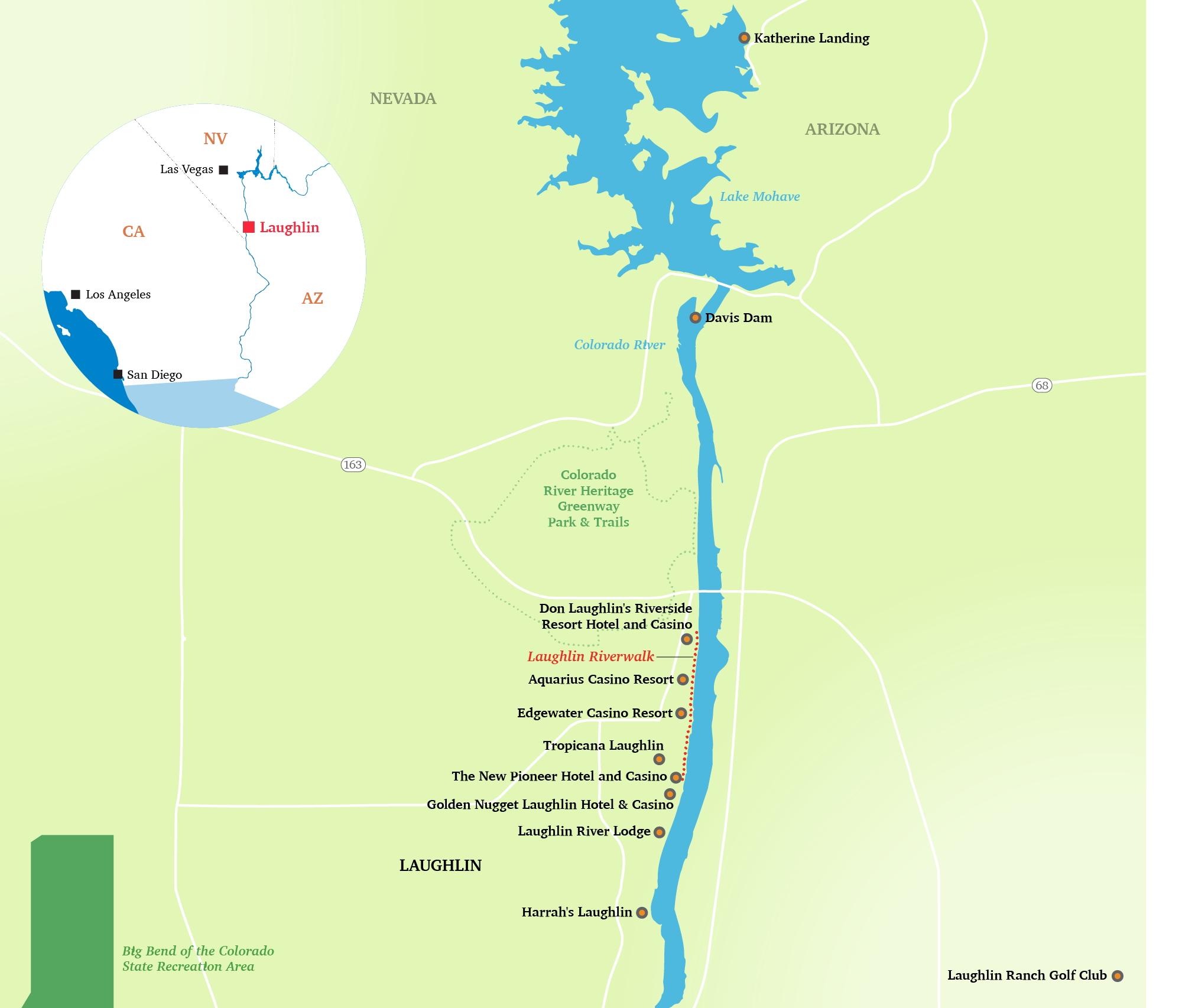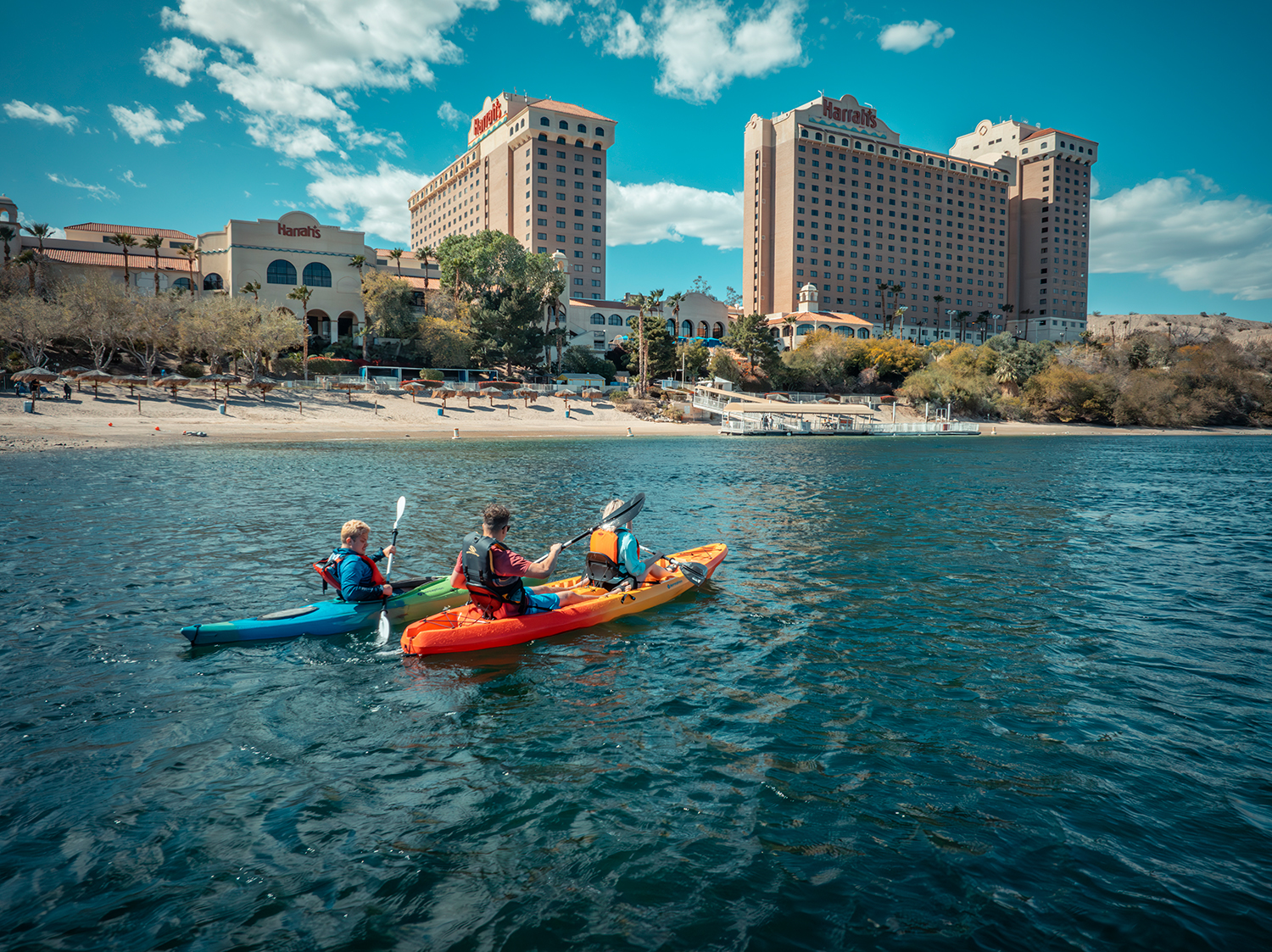 The resort town of Laughlin, Nevada is full of dualities. A desert town with the mighty Colorado River running alongside it. Relaxed restaurants serving comfort food alongside upscale steakhouses for a fancy night out. A-list concerts with high-energy acts paired with comedy shows in intimate venues. Excitement both indoors (eight casino resorts) and outdoors (kayaking, hiking, golf and more). These all combine for a harmonious, easygoing getaway.