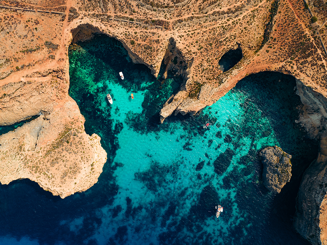 No trip to Malta is complete without a visit to its other two inhabited islands, Comino and Gozo. Board the ferry and, in just 15 minutes, enter a whole new dimension of turquoise waters and rugged coastlines waiting to be explored. You’ll only need one day for a visit to Comino, known for its crystal-clear water and many swimming points. With 12 recognized diving sites, it’s also considered a diver’s paradise, putting underwater explorers eye-level with a shipwreck, a chimney-like swim-through cavern filled with fish and more.