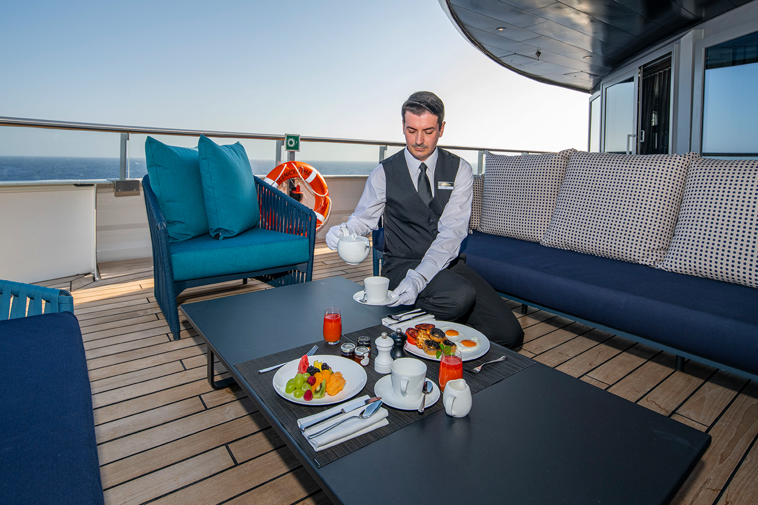 Butler serving breakfast on the Owners Penthouse Suite terrace
