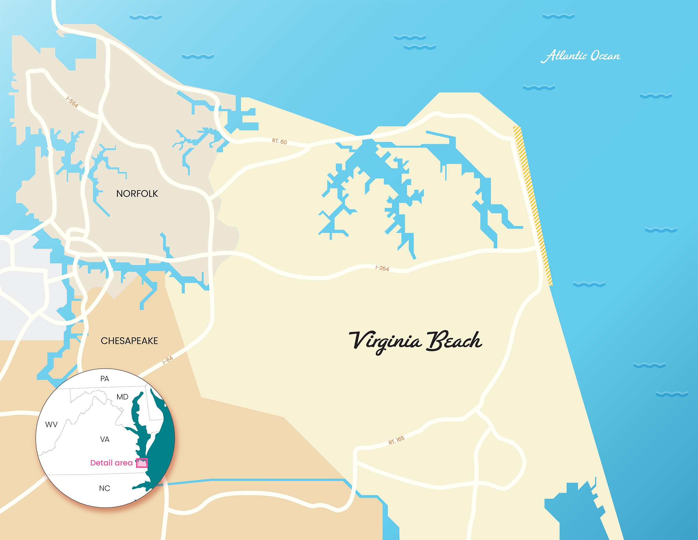 W here the Atlantic Ocean meets the Chesapeake Bay, you’ll find the coastal city of Virginia Beach. Its warm temperatures and attractions make it an appealing, family-friendly getaway year-round. Vacations here are about living in the present by experiencing outdoor adventures, cultural events and, of course, fresh seafood. But they’re also a gift to your future self, who will get to think back on all the fun memories and smile.