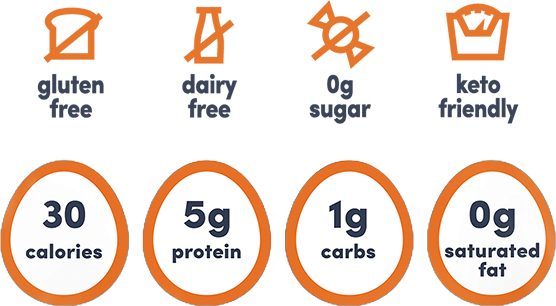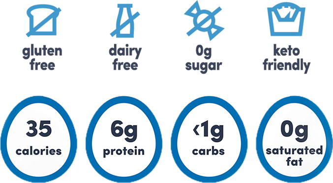 A protein-packed, light-tasting canvas for your artistic filling creations. Simply made with over 95% cage free egg whites and little else. Five grams of protein in just 25 calories and 0 carbs, fat, or cholesterol.
