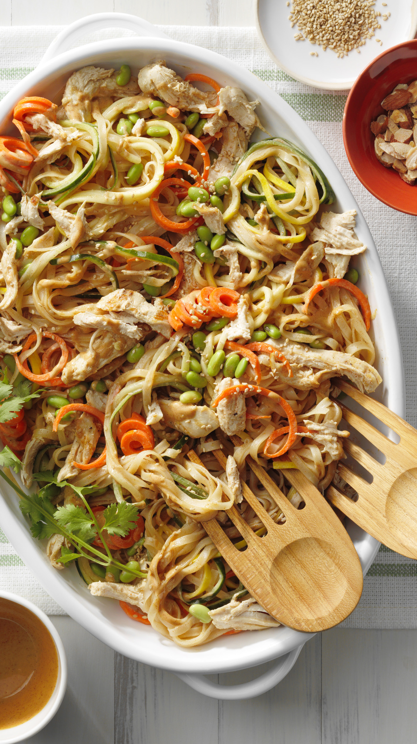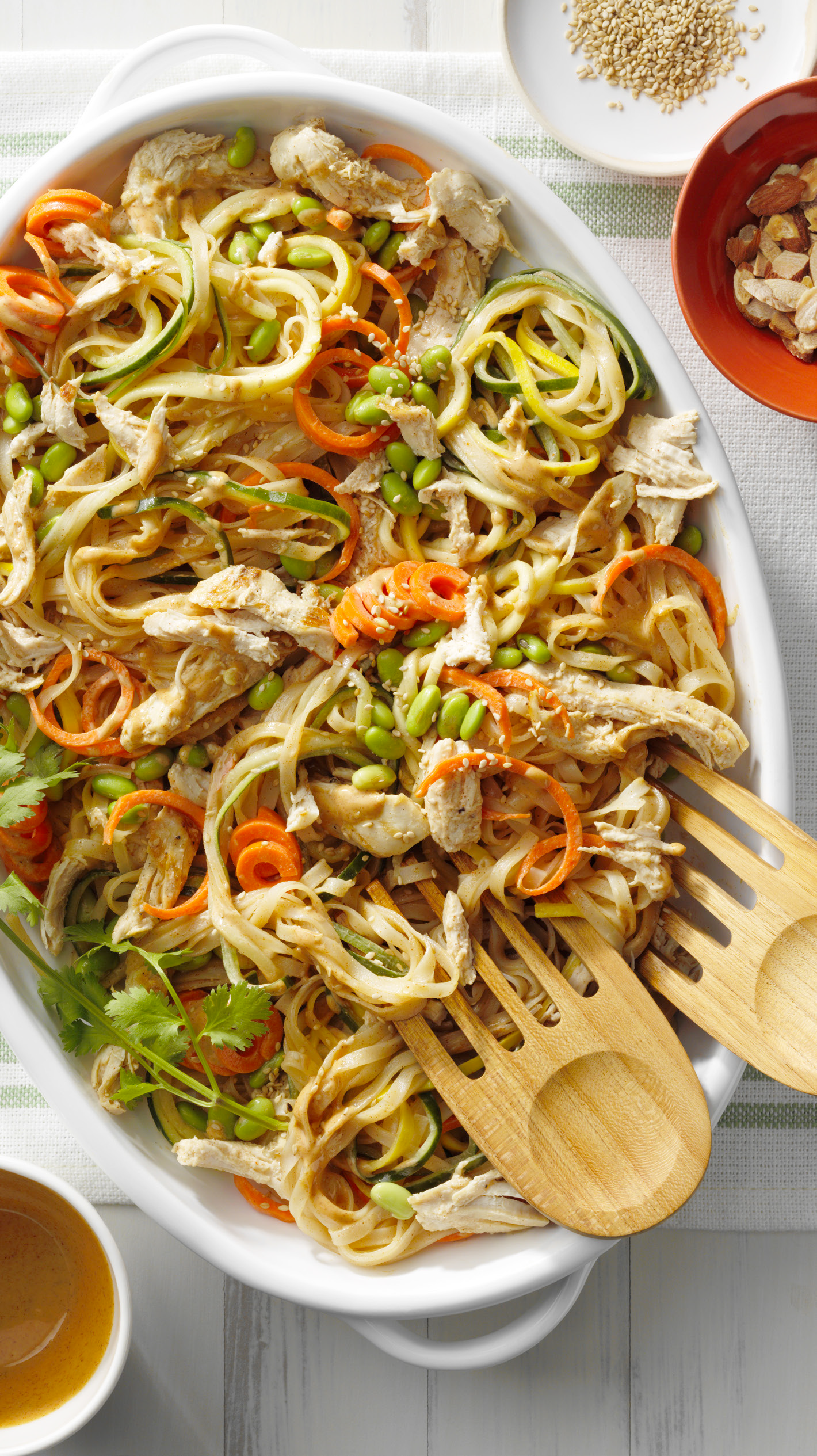 5. Add edamame, noodles and chicken to bowl. Salad can be refrigerated 3-4 hours.