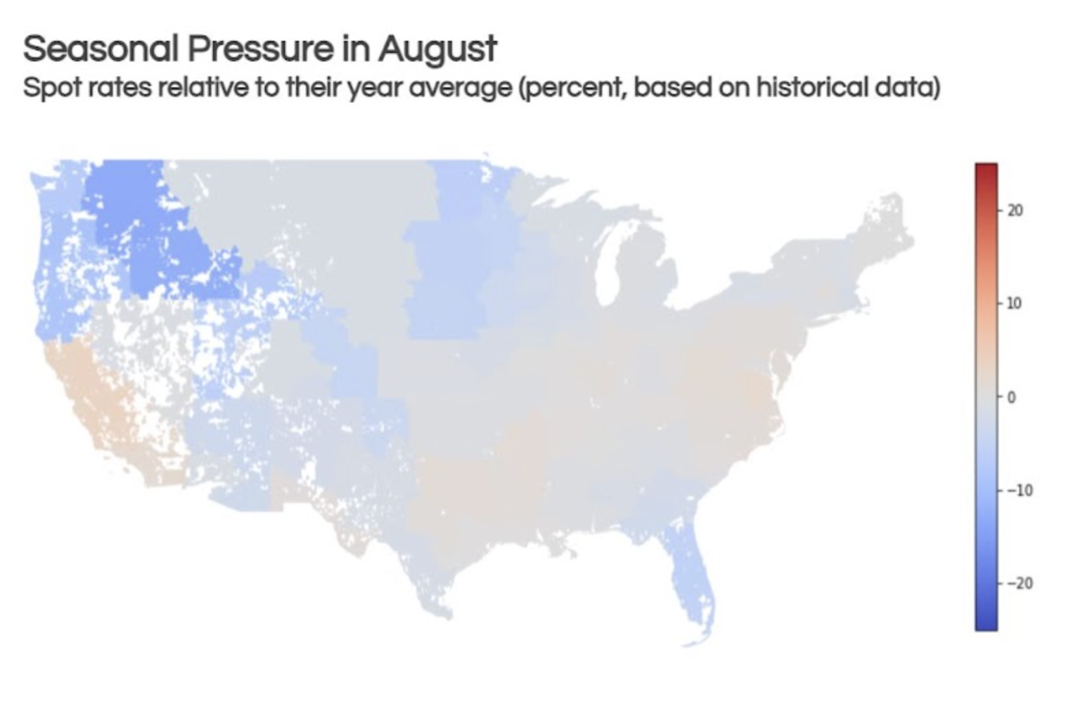 Spot rates typically experience a rapid increase from late May into early June, particularly in Southern markets like Florida, California, Texas, and Arizona. In contrast, Northern markets tend to remain relatively soft during this period.