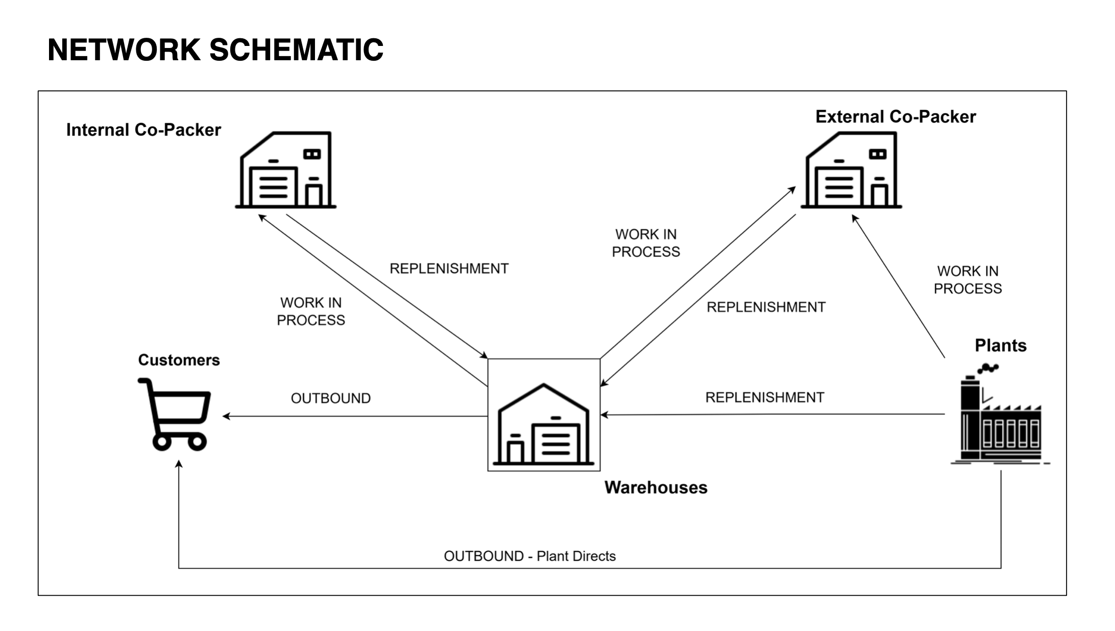 Uber Freight’s Consulting team had previously developed separate models for production optimization and network distribution for the manufacturer. However, operating these models independently risked overlooking significant synergies and cost-saving opportunities. Recognizing the need for a holistic solution, the manufacturer engaged Uber Freight to develop an integrated network optimization model, ensuring strategic and data-driven decision-making across a complex footprint of internal plants, regional DCs, external manufacturers, and co-packers. Each co-packing facility imposed unique restrictions tied to production lines, operating hours, and product group capabilities.