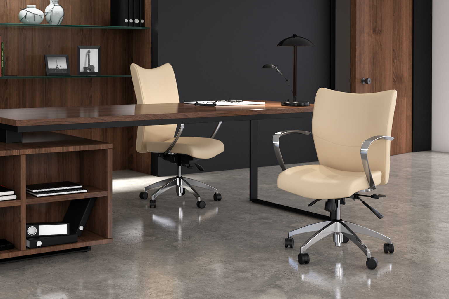 From subtle details, like the waterfall shaped seat front, to innovative features such as the ratchet back height adjustment, Bristol offers ergonomics in the conference room as well as the private office. Fixed arm styles or with pivoting arm pads featuring Ura-Soft padding and 4-way adjustments are available for an advanced level of ergonomic customization. Bristol is made with a high-resilient molded foam in every seat and back that will last in comfort and durability for years.