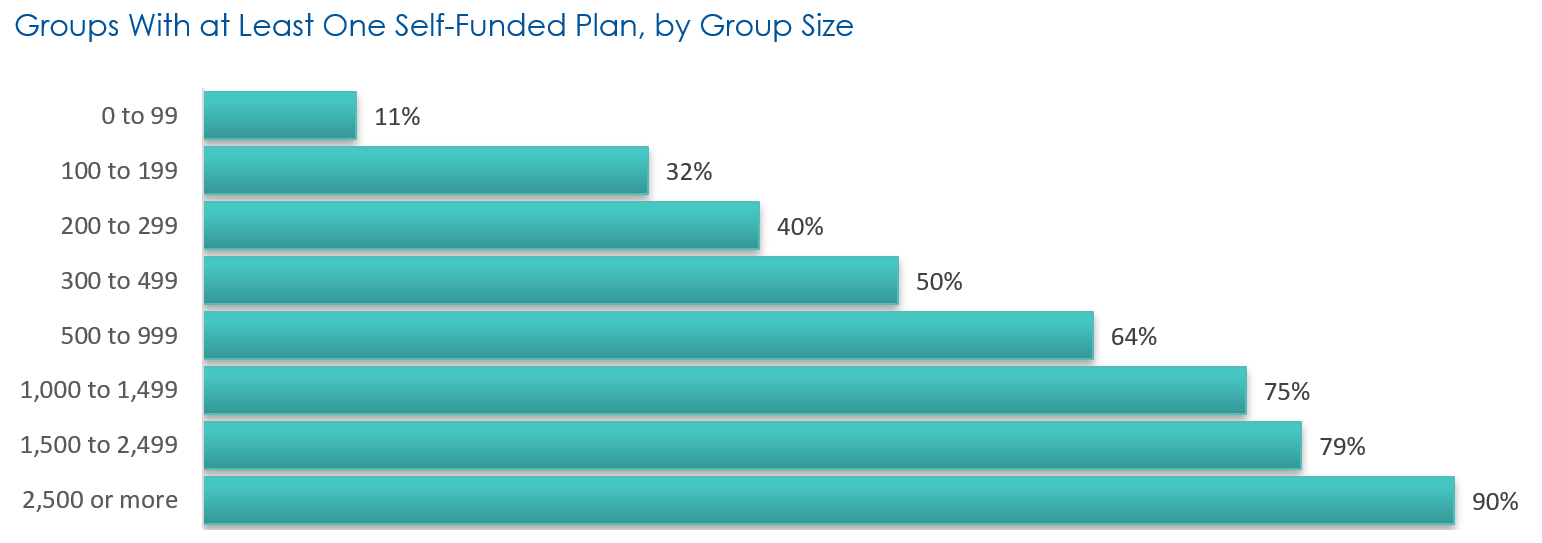 While the majority of employers in the 500 to 2,500+ employee group range offer at least one self-funded plan, smaller organizations have also found success self-funding their plans.