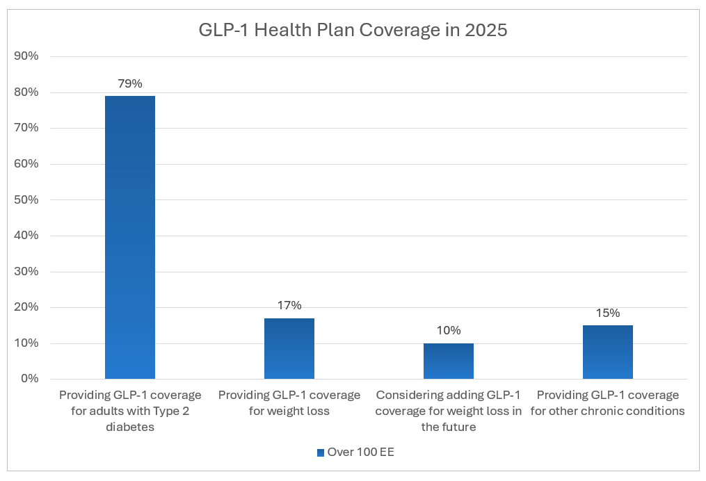 Increased demand for GLP-1 medications to treat Type 2 diabetes and promote weight loss will continue to drive up pharmacy costs for employers. Employers should explore strategies such as prior authorization and higher cost-sharing to better manage these expenses.