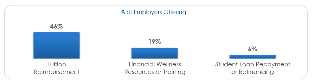 Many employers recognize the value of providing financial wellness benefits, such as resources and training, tuition reimbursement, and student loan repayment.