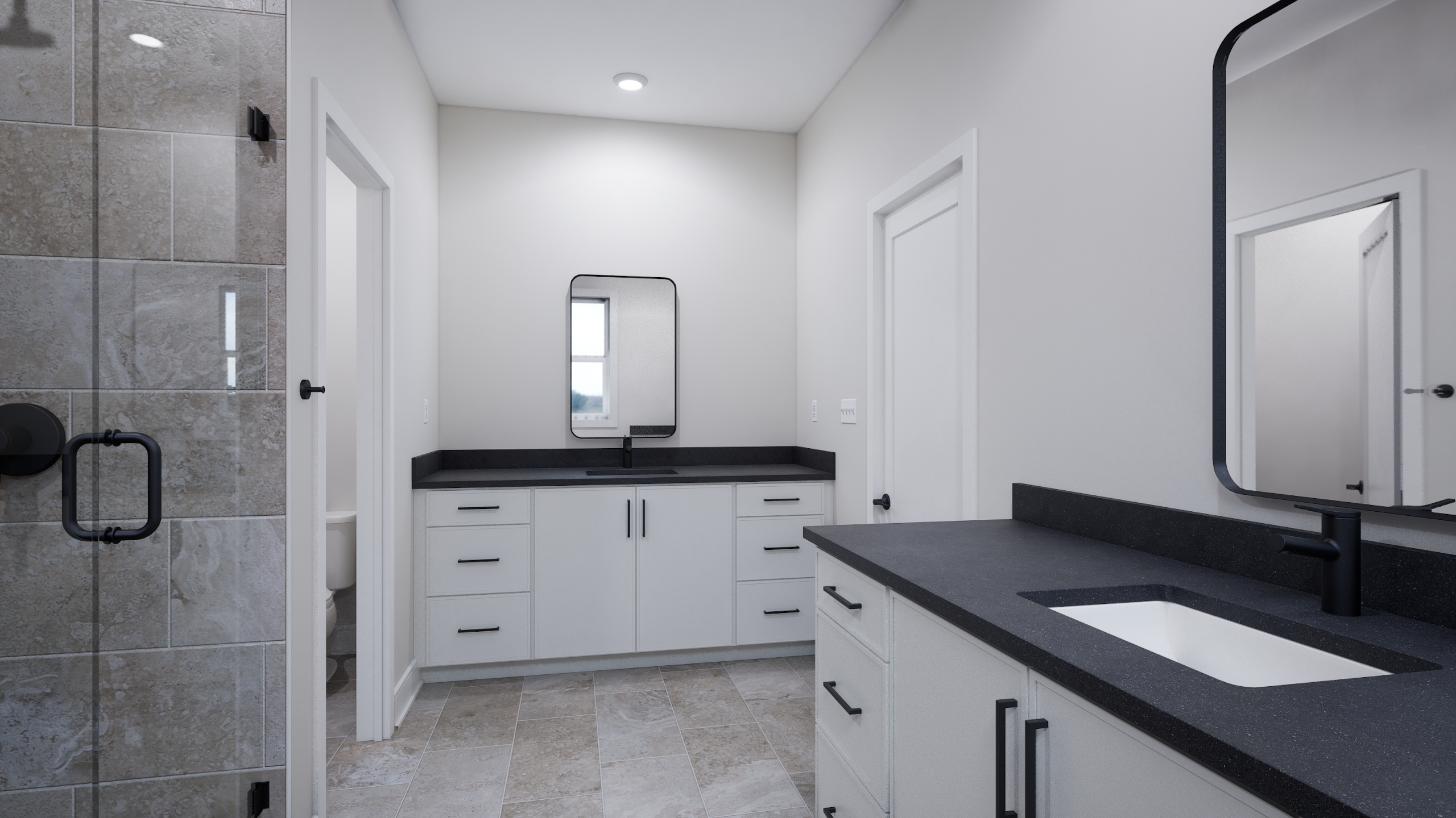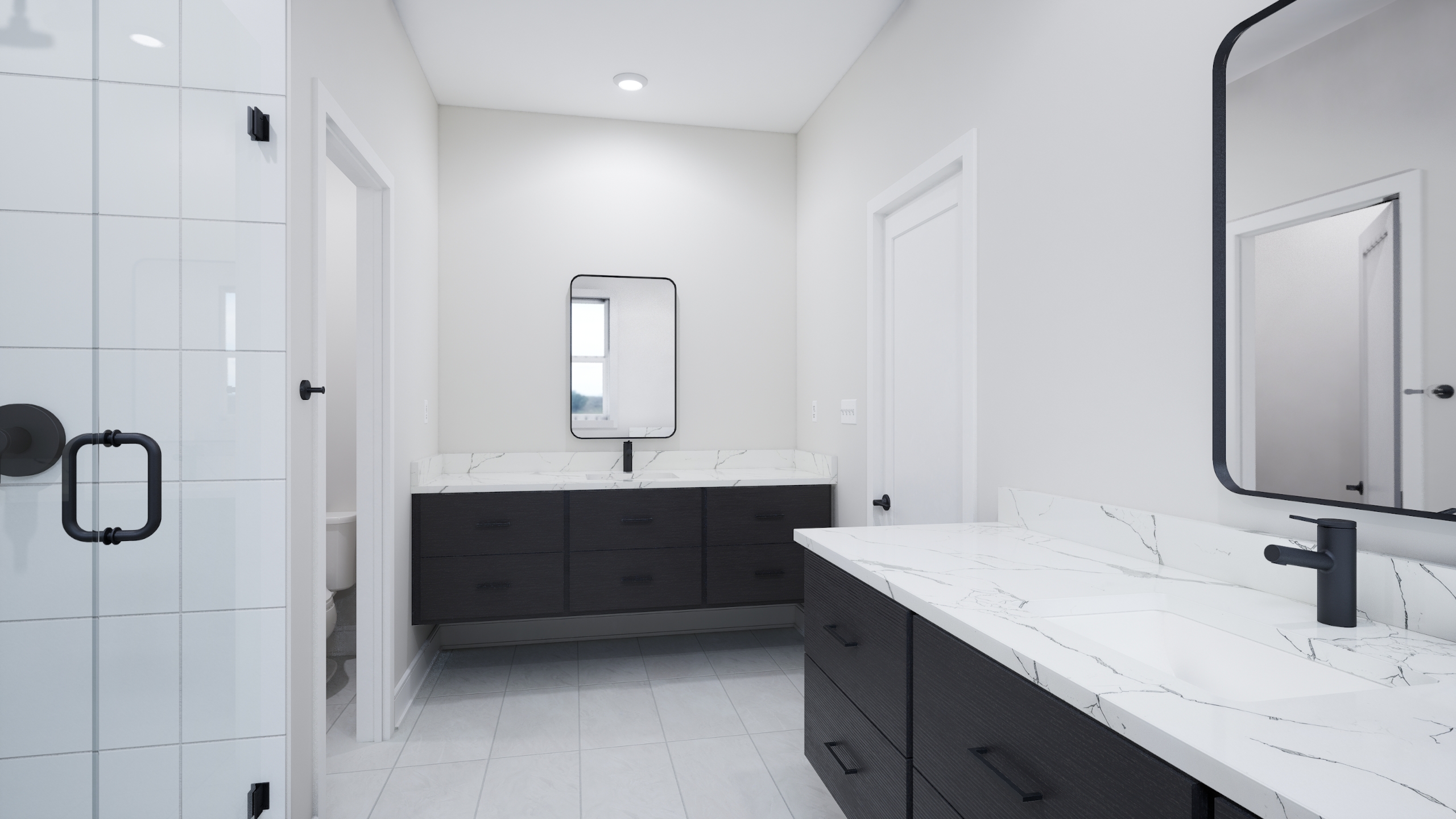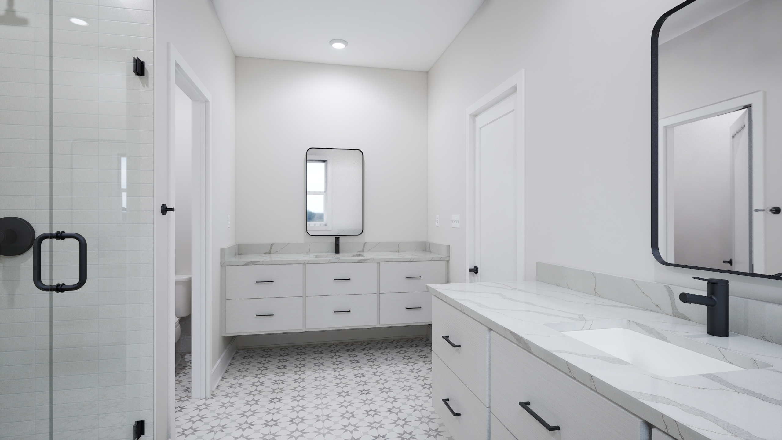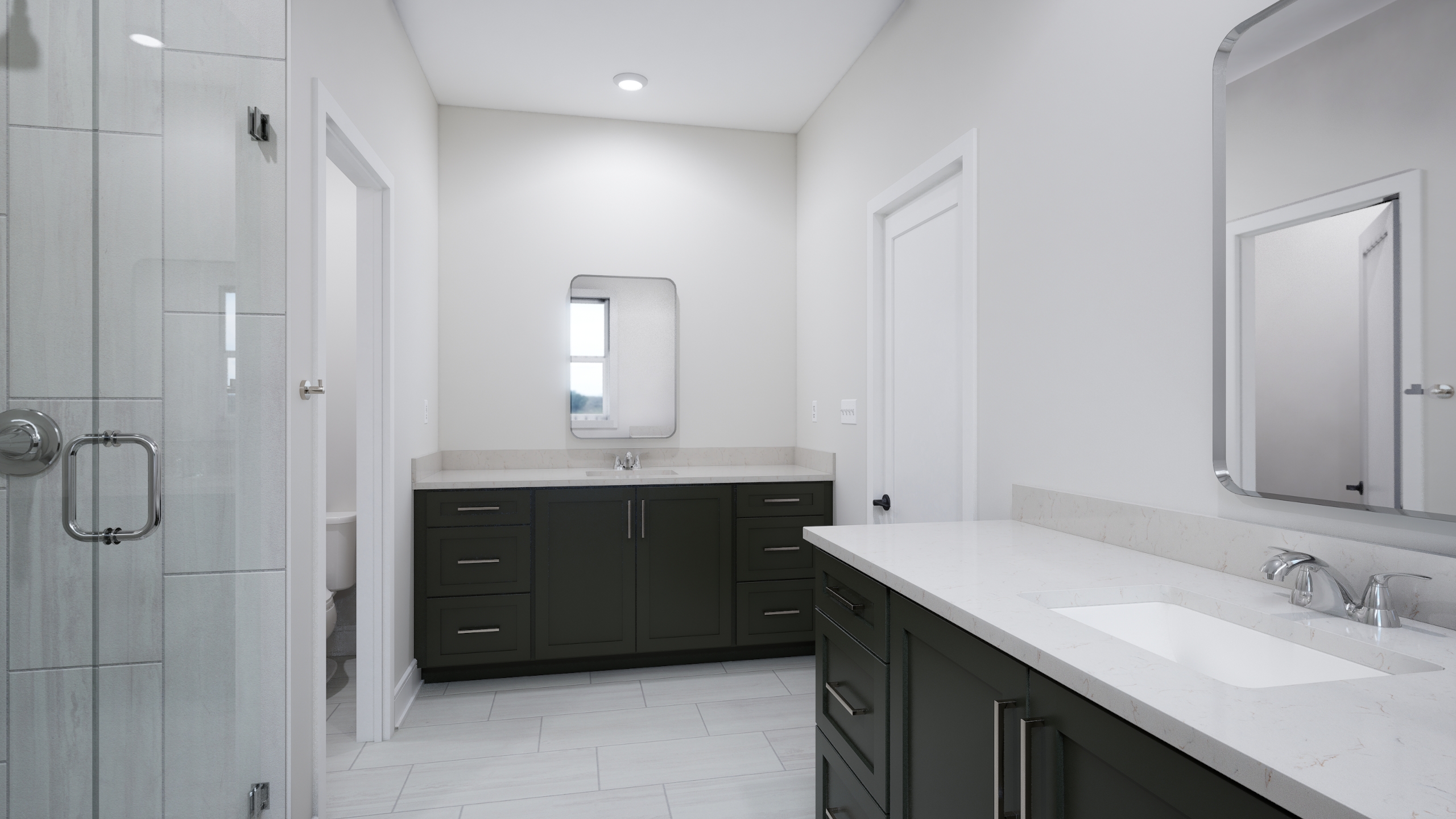 Primary bath with frameless shower