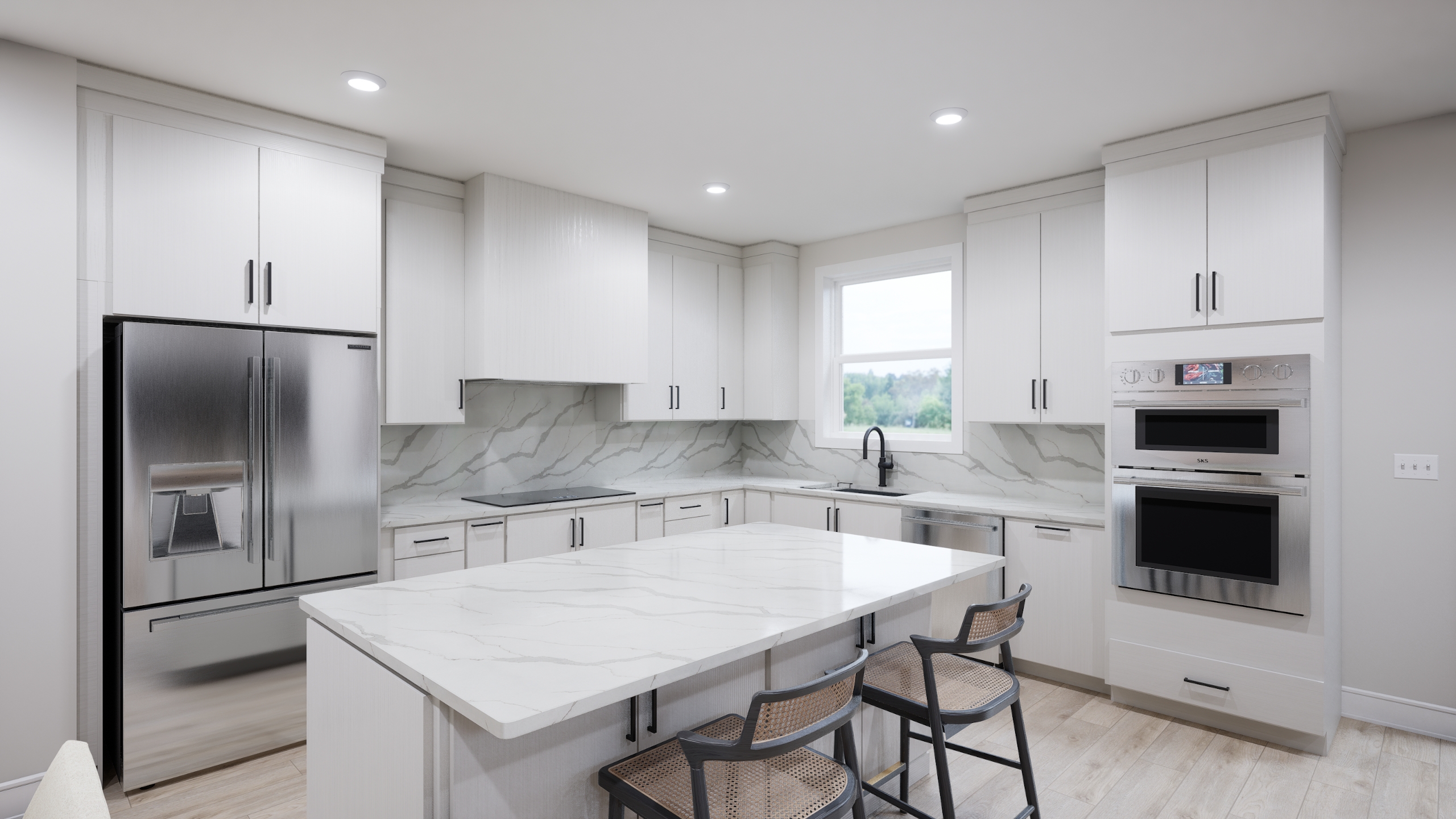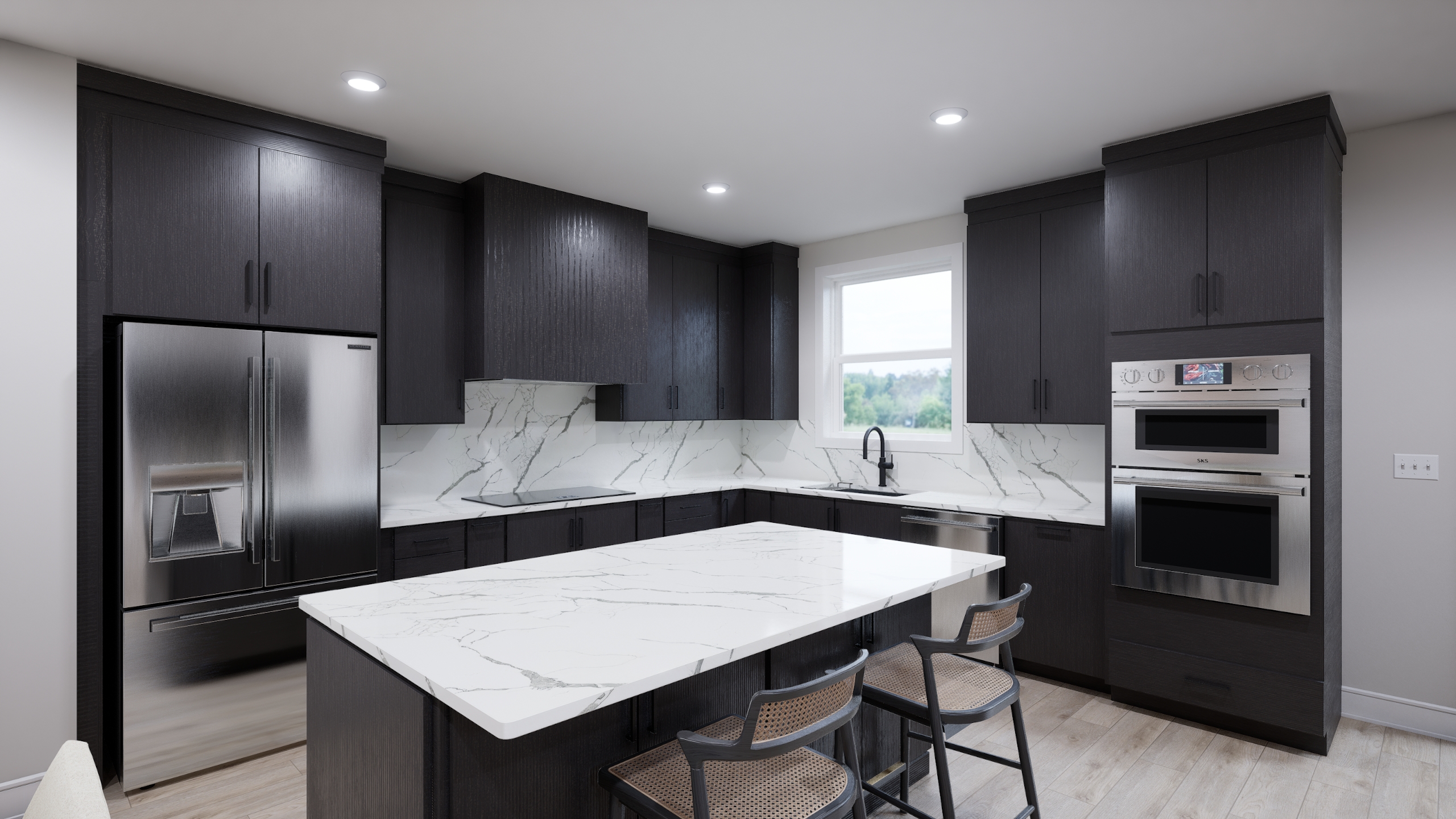 Signature Kitchen Suite appliances with wood hood