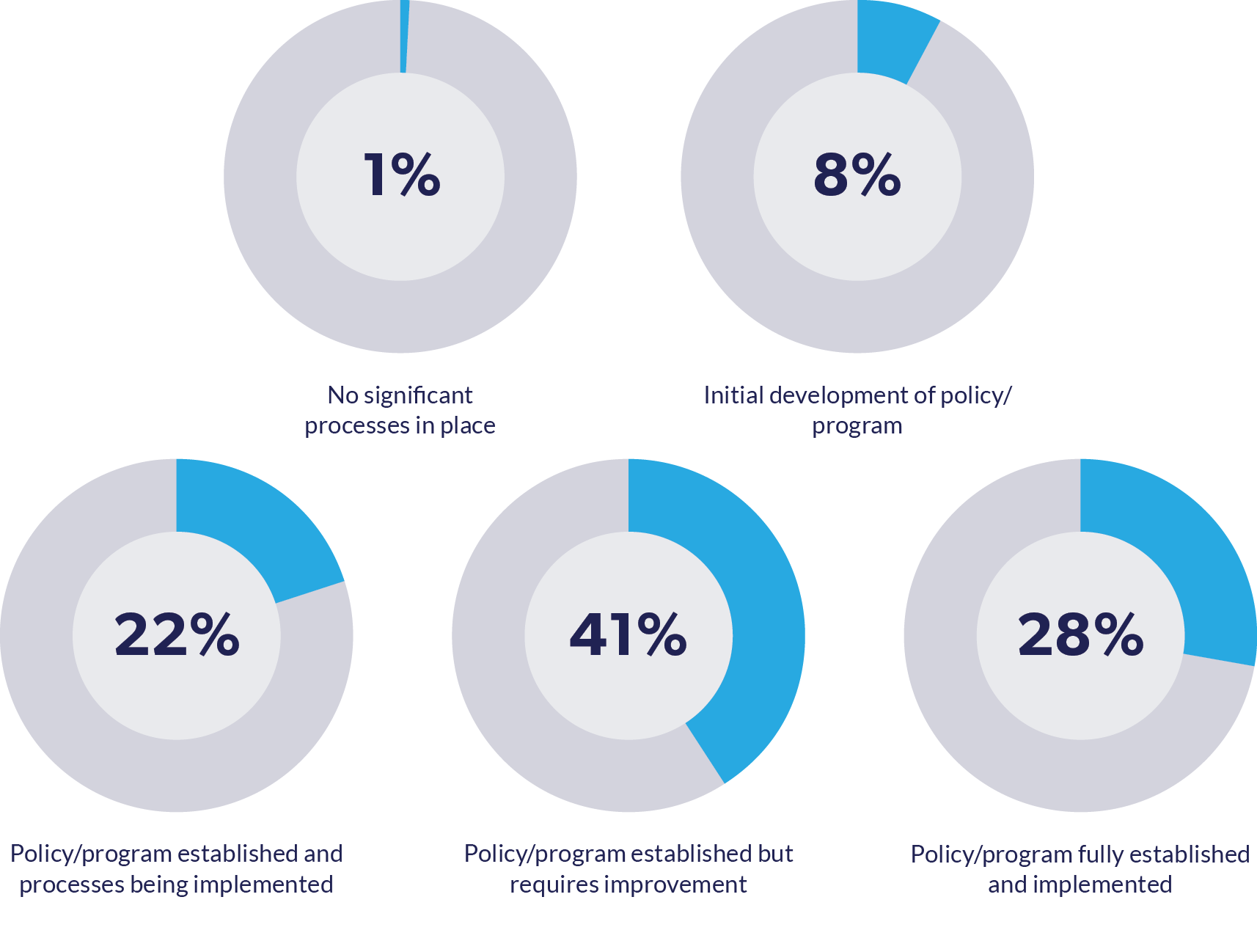 Third-party risk management is a regulatory requirement for many. Still, simply having a program and going through the motions isn’t enough. While 28% of our respondents have a fully established and implemented program, another 41% of those surveyed reported a fully established program that requires improvement.