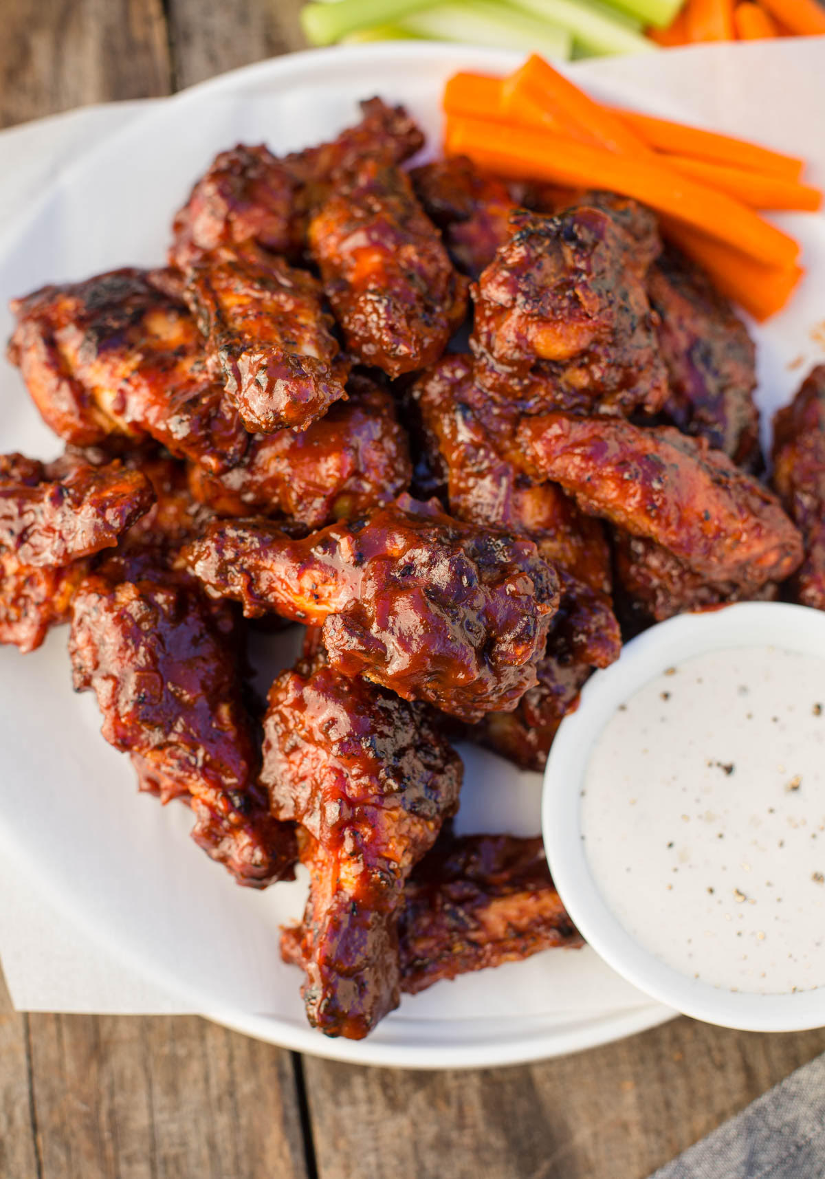 To prep: at least 4 hours before grilling or overnight, pat the wings dry with a paper towel.