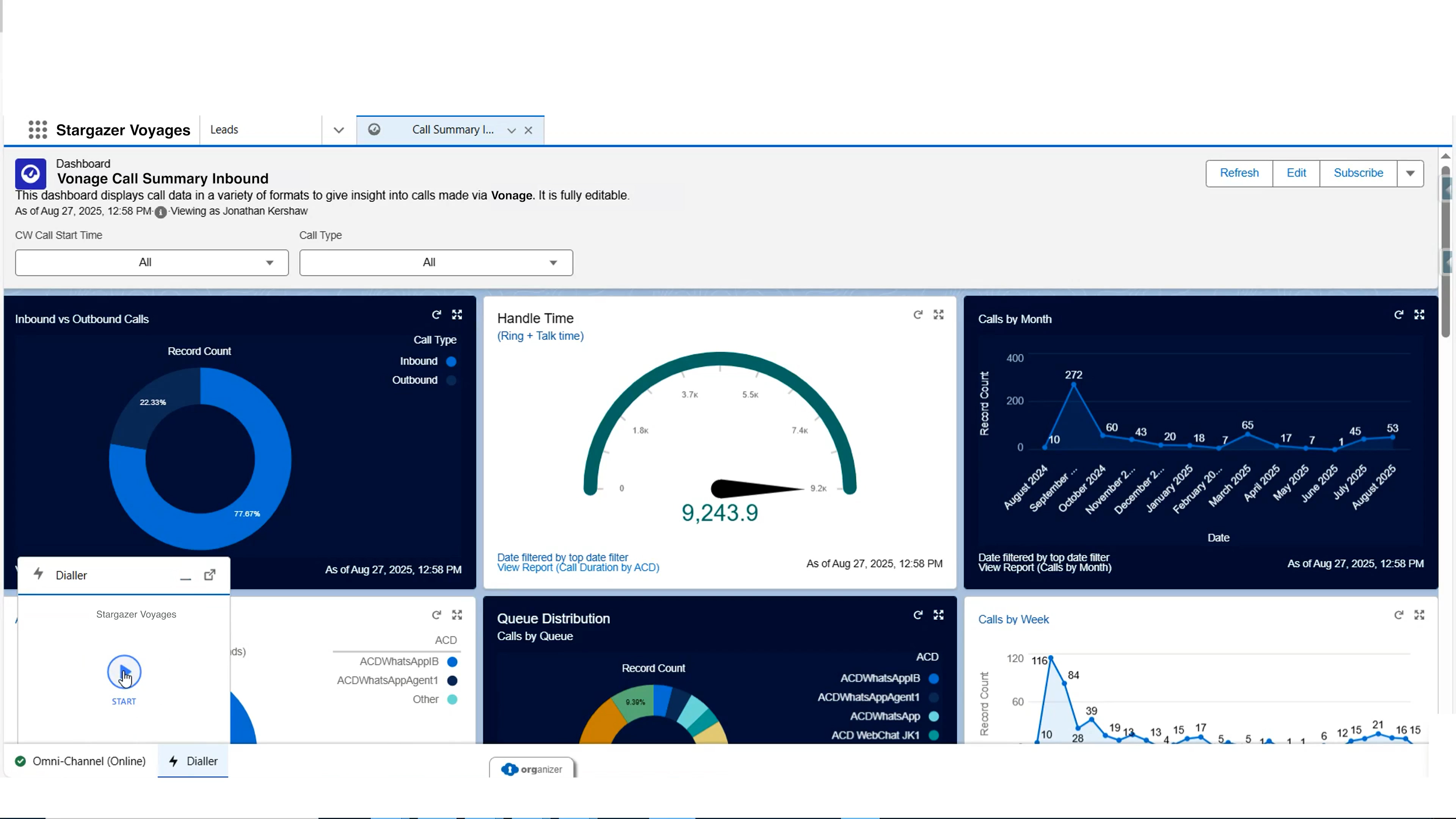 With Vonage data integrated into Salesforce, advanced reporting and analytics are only a dashboard away—giving Stargazer Voyages leaders actionable insights to improve agent performance, enhance experiences, and free up admins for high-value projects.