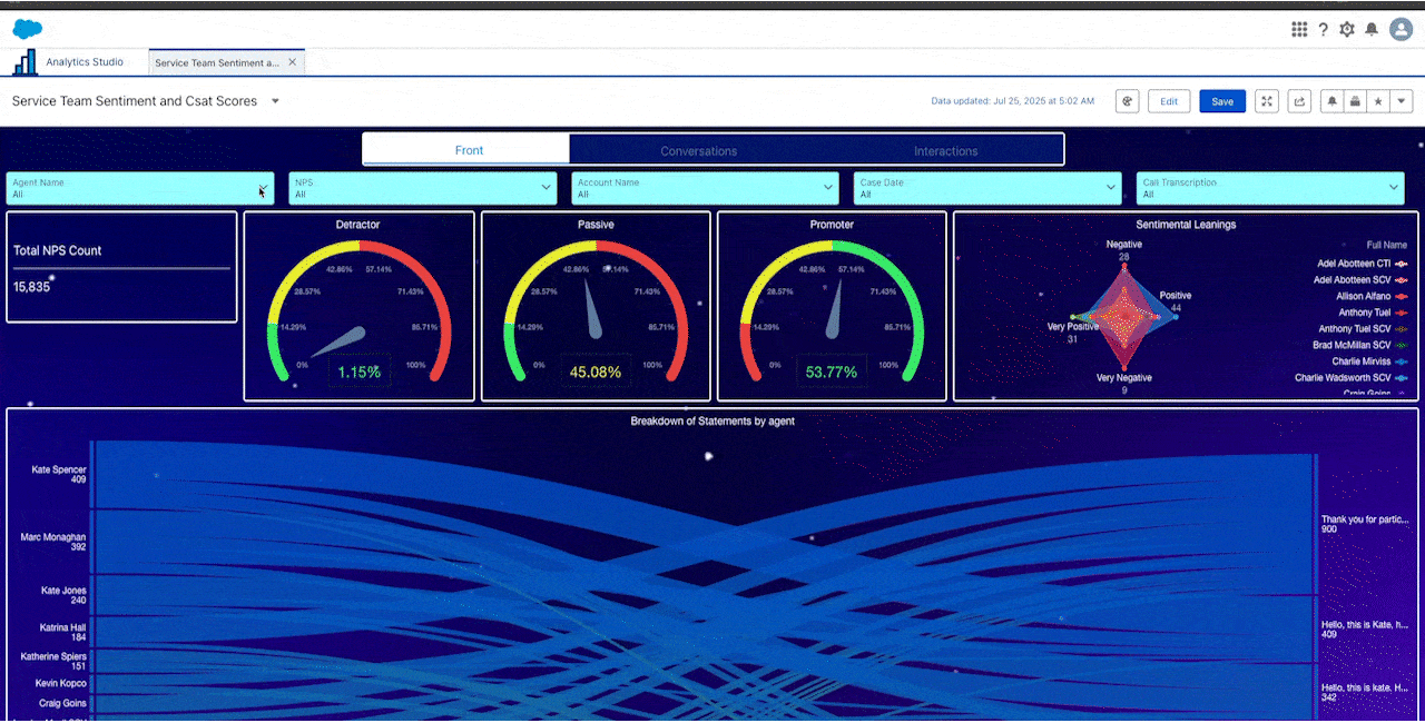 Salesforce dashboards bring the story to life, allowing leadership to review sentiment trends, and surface actionable insights—all without exposing sensitive data.