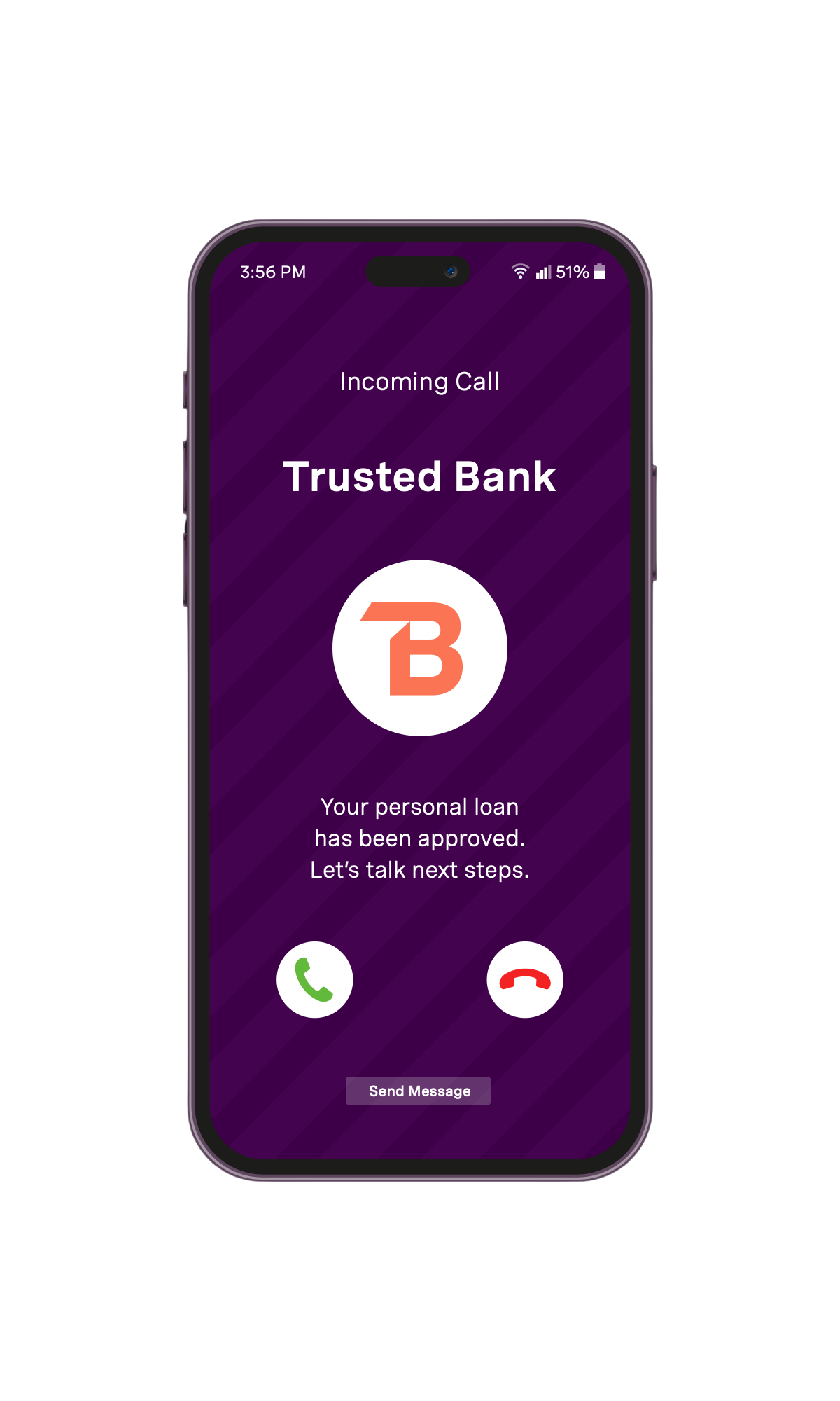 Before ending the call, Taylor requests a credit limit increase. Instead of holding, the request is routed to a Virtual Contact Center queue for a quick callback. When the call comes through, it’s branded with Trusted Bank Co’s logo and number via Vonage Branded Calling API—boosting trust, recognition, and security.