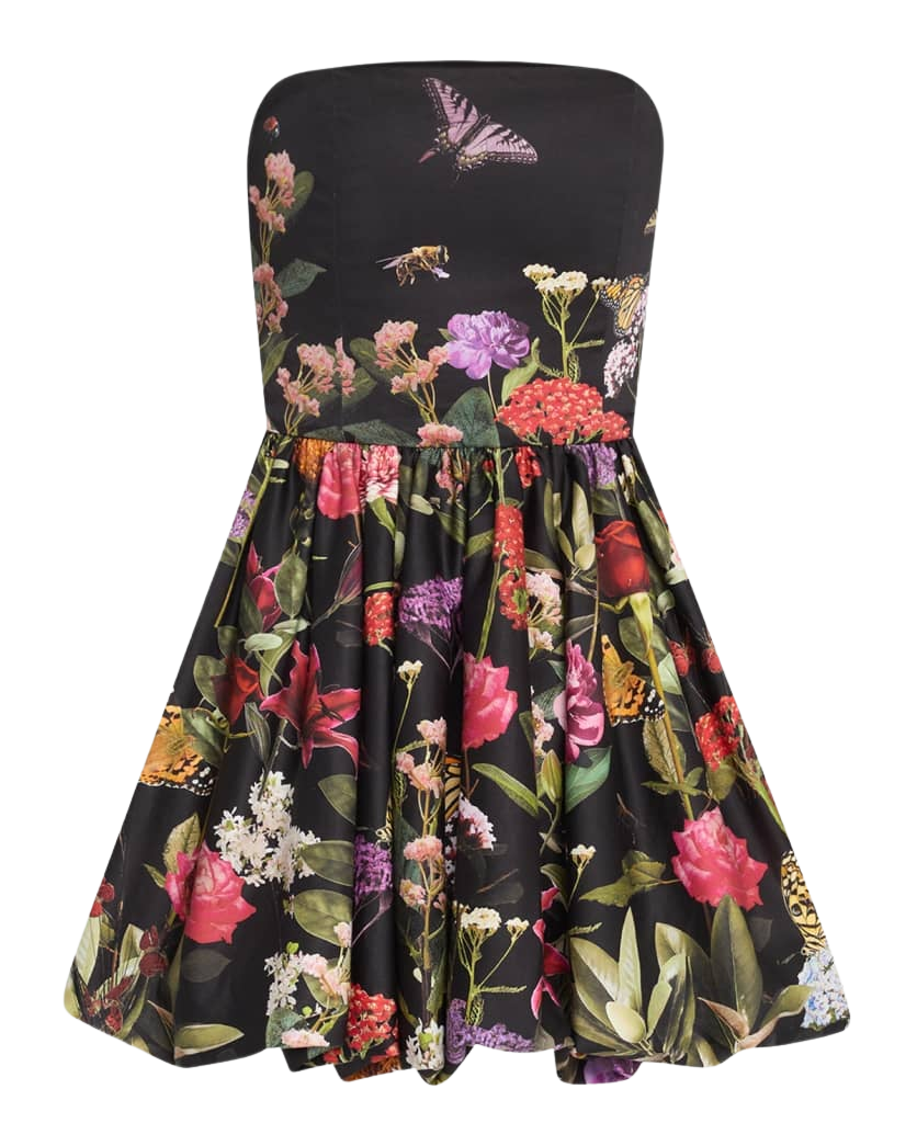 Asha Strapless Structured Bubble-Hem Mini Dress