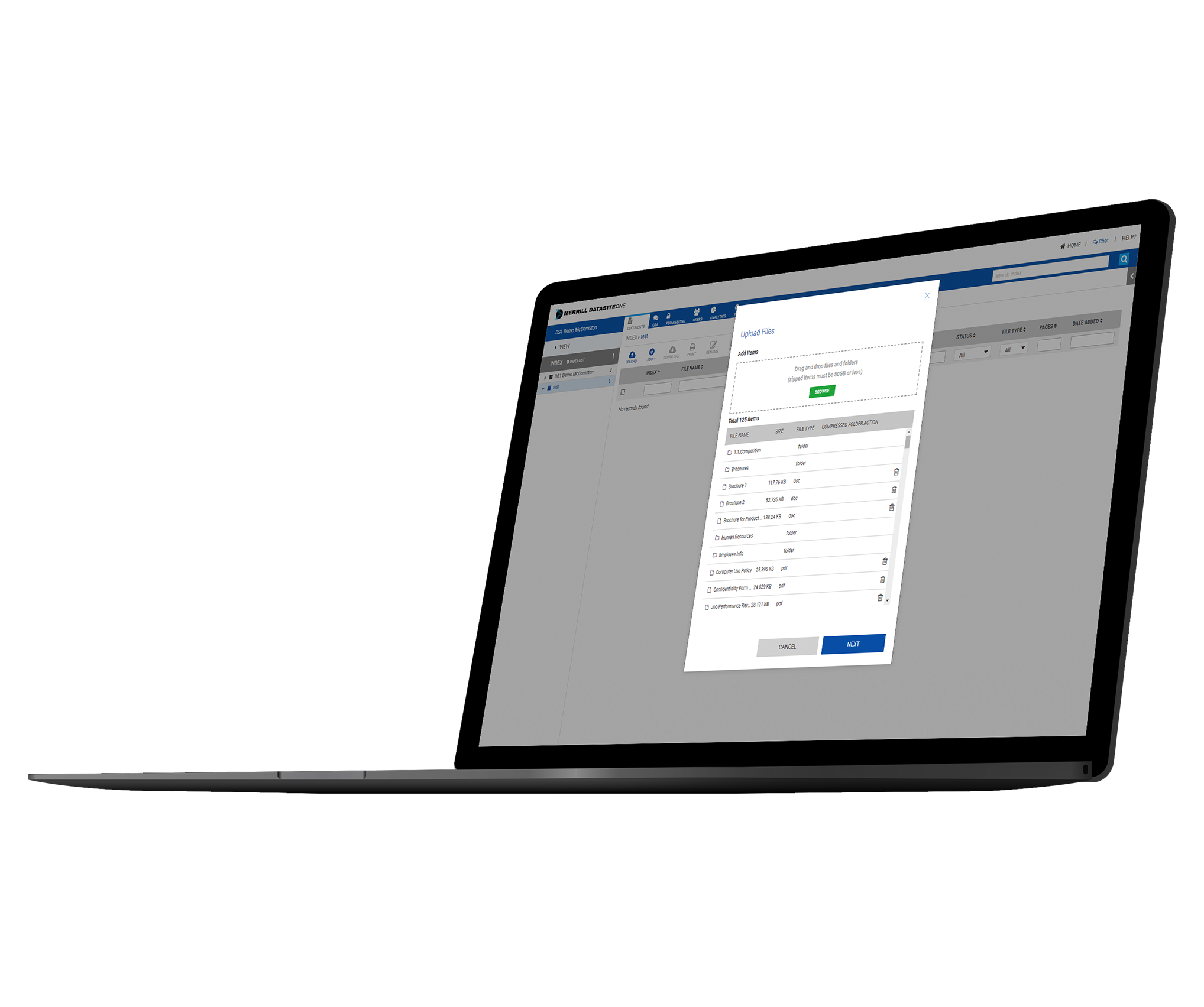 Quickly upload all types of files and folders by dragging and dropping while indexing and retaining original file format.