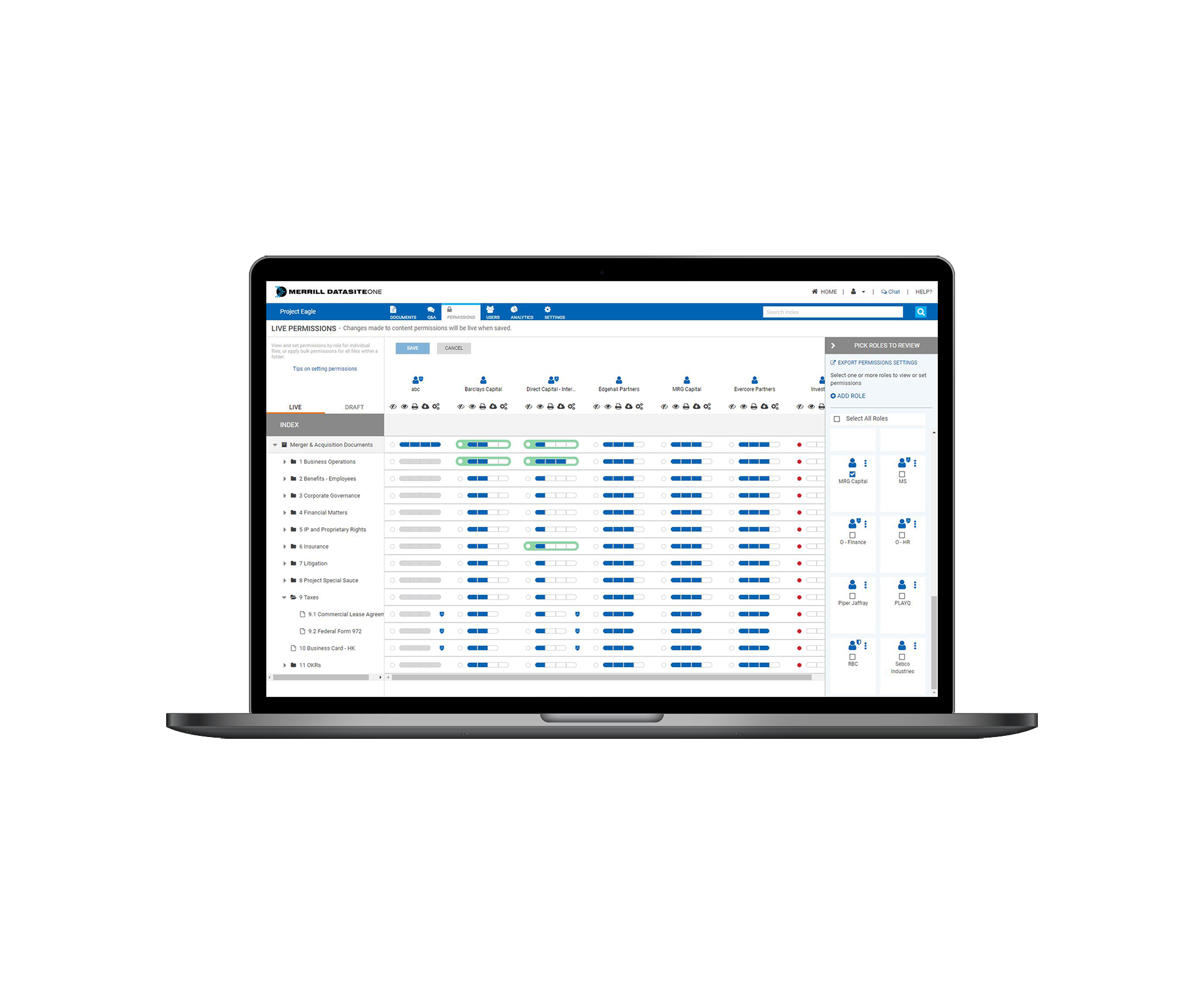 We realize that due diligence can bring a lot of worries. DatasiteOne new tools allow you to focus on aspects of the deal other than access and security. Easily onboard the correct users and have your data room ready to go faster than ever before.