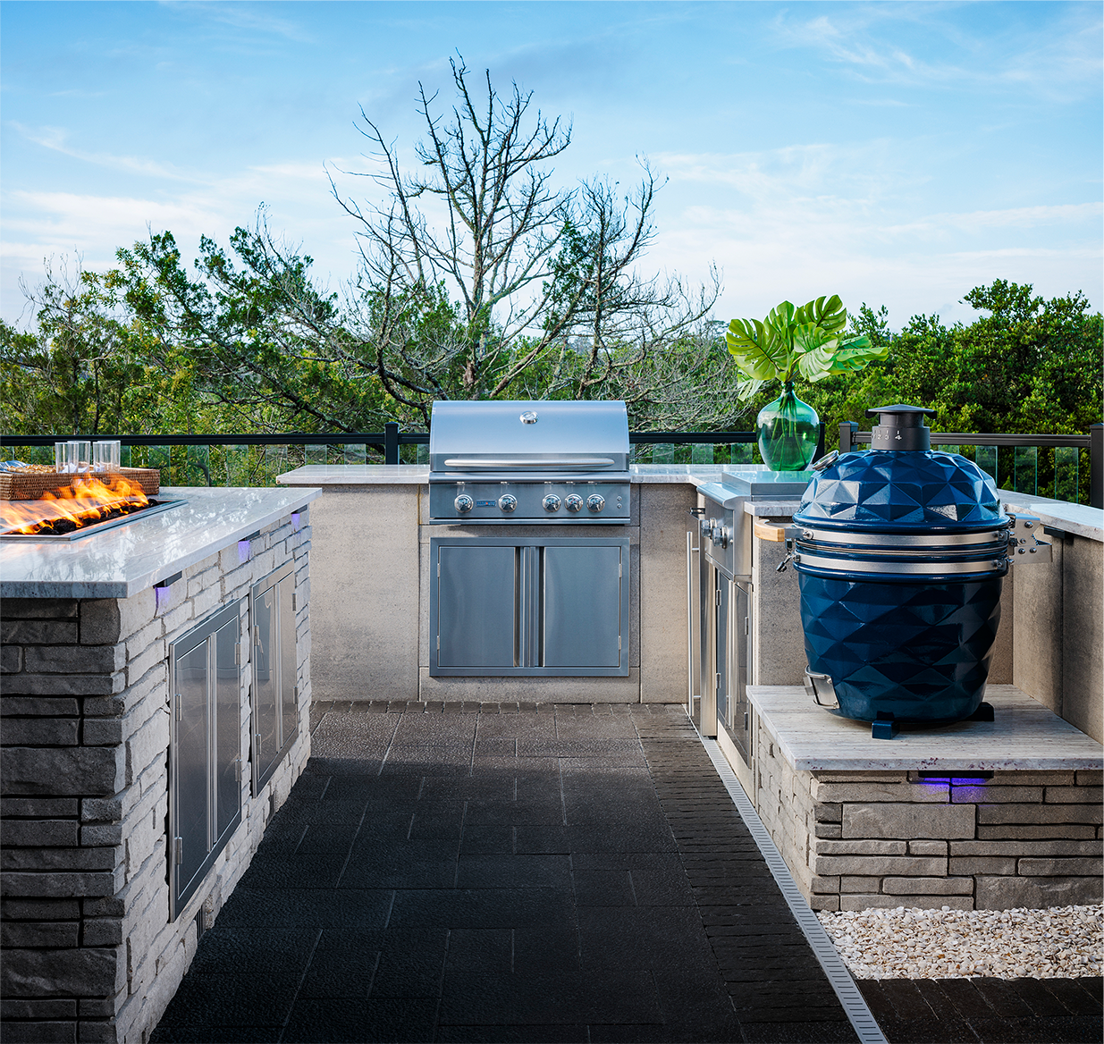 Enjoy every meal al fresco with sleek outdoor appliances and a fire table with enough