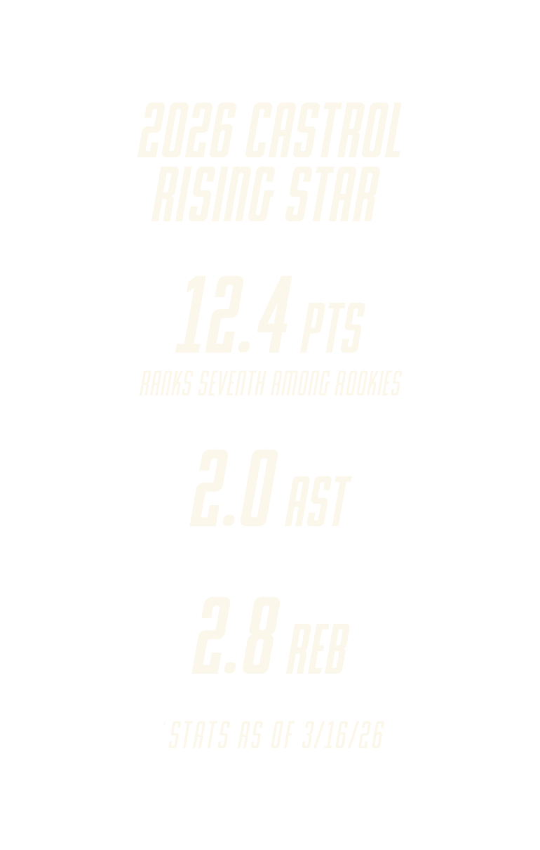 Tre’s debut season made noise — logo threes and double teams. Built in the gym and proven on the court, this rising star has proven he belongs on the NBA All-Rookie team.